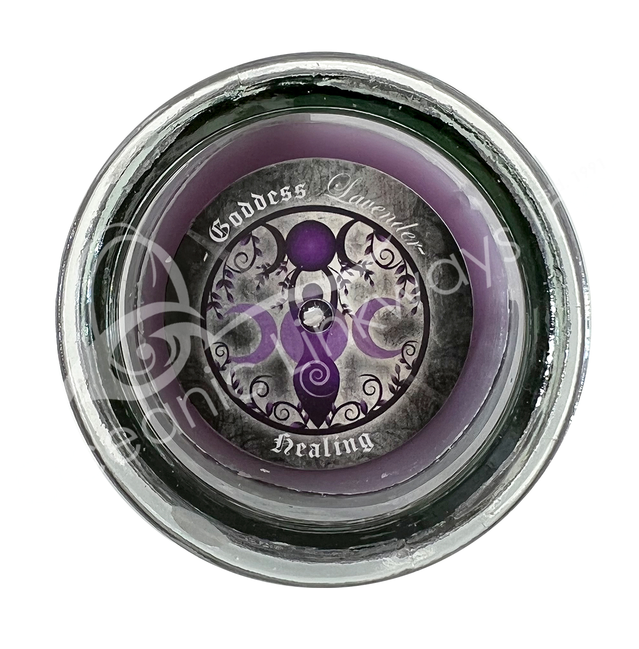 CANDLE – GLASS JAR LAVENDER/GODDESS 8″H X 2.25″DIA.