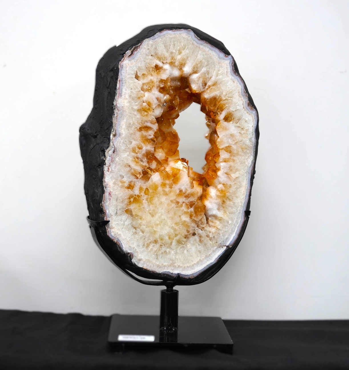 Item # 30222034-1SPECIMEN – CITRINE RING ON METAL STAND 21″H X 12.5″W
