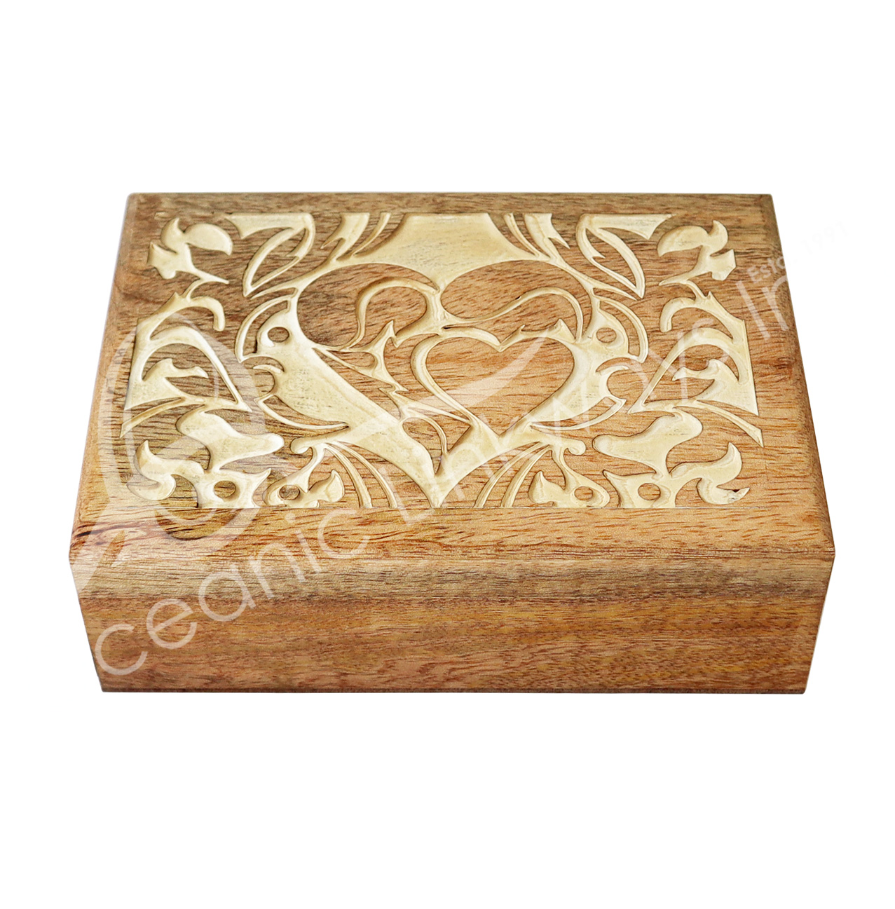 Item # 30153101(CLOSE OUT) BOX – MANGO WOOD MACHINE CARVED HEART 7 x 5″