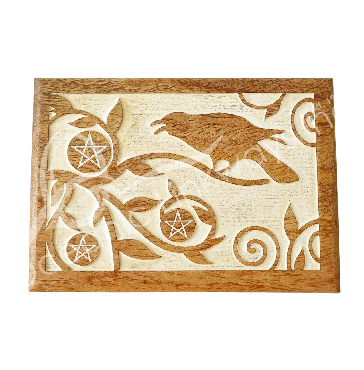 Item # 30153262(CLOSE OUT) BOX – METAL RAVEN & PENTACLE EMBOSSED 5 X 7″