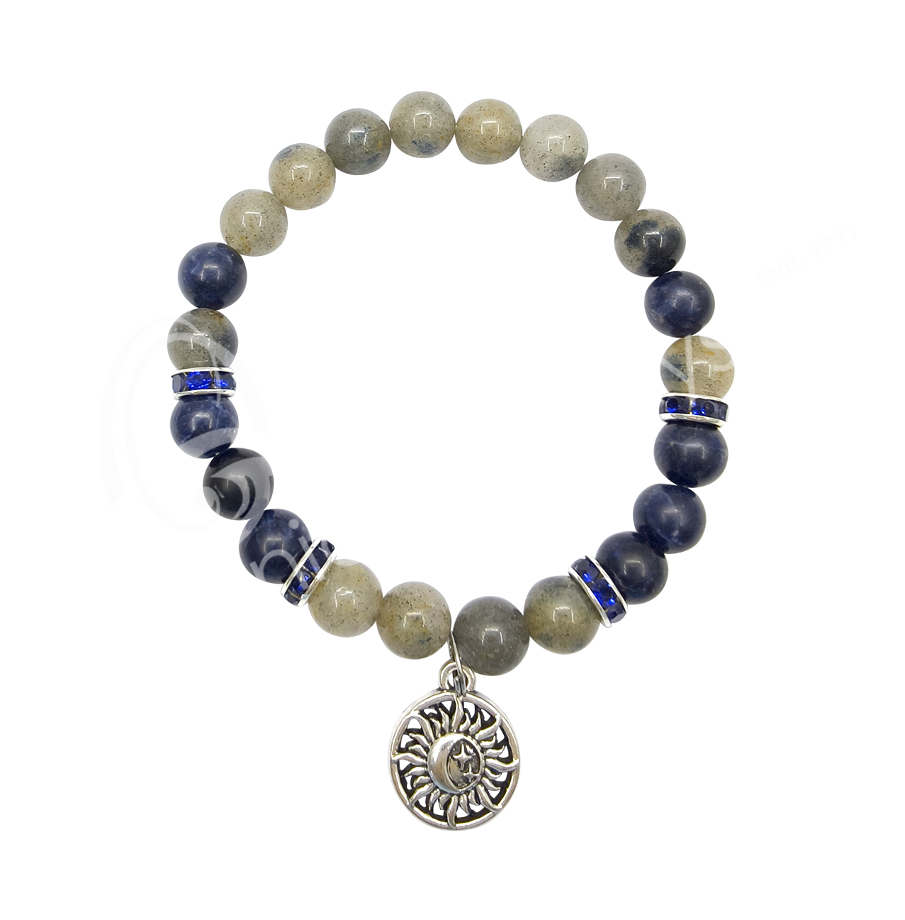 Item # 30438840BRACELET – K2, AFRICAN & SODALITE WITH CELESTIAL CHARM (8-8.5 MM) 7.15-7.25″