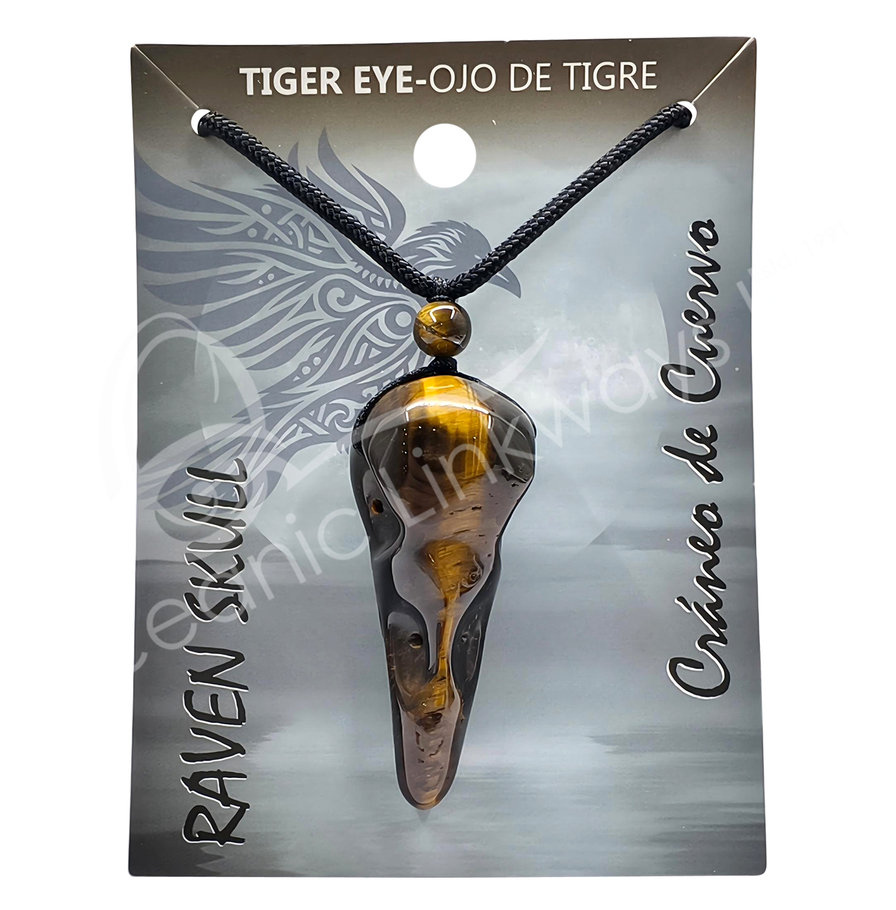 Item # 30437034NECKLACE – RAVEN SKULL TIGER EYE ADJUSTABLE 9-12.6″L