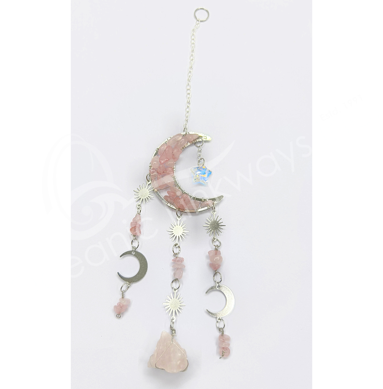 Item # 30488069HANGING – MOON ROSE QUARTZ CHIPS 8.5-9″L