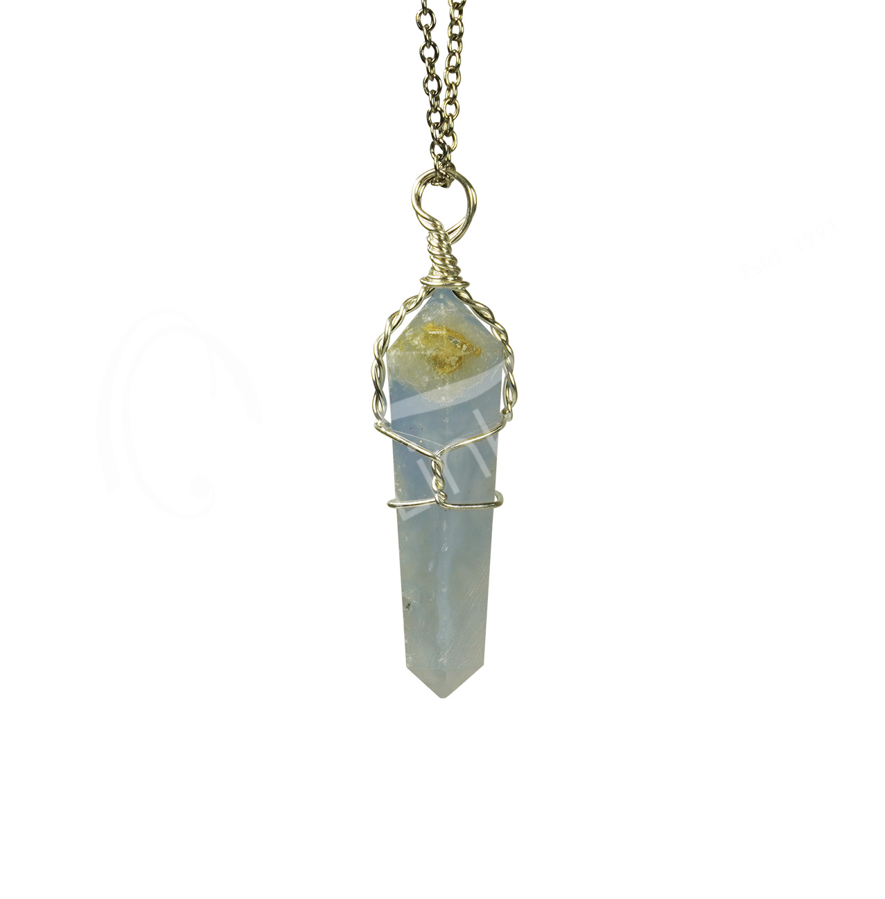 Item # 30111251PENDULUM – HEXAGONAL AGATE, BLUE LACE PLAIN CHAIN 9″L