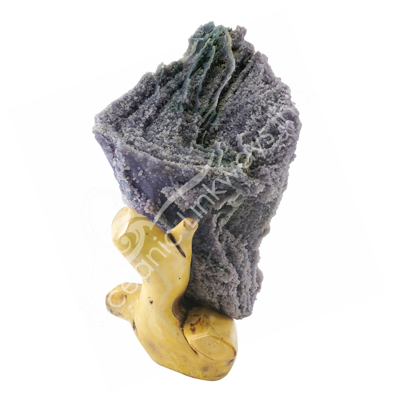 SPECIMEN – AGATE, GRAPE ON WOOD BRANCH STAND 13-27″