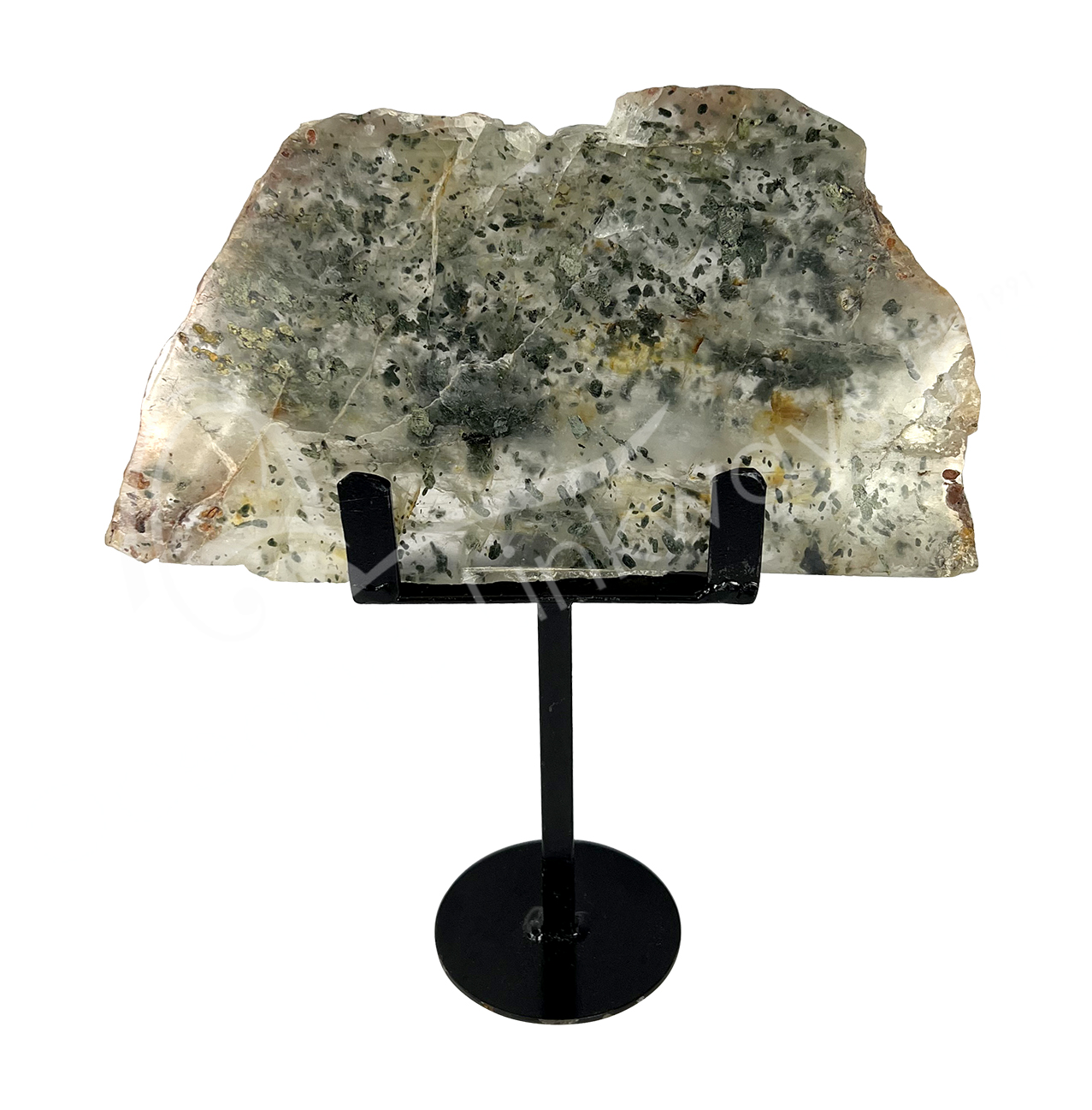 Item # 30130013(CLOSE OUT) SLICE – CLINOCHLORE QUARTZ POLISHED ON METAL STAND 4-10″
