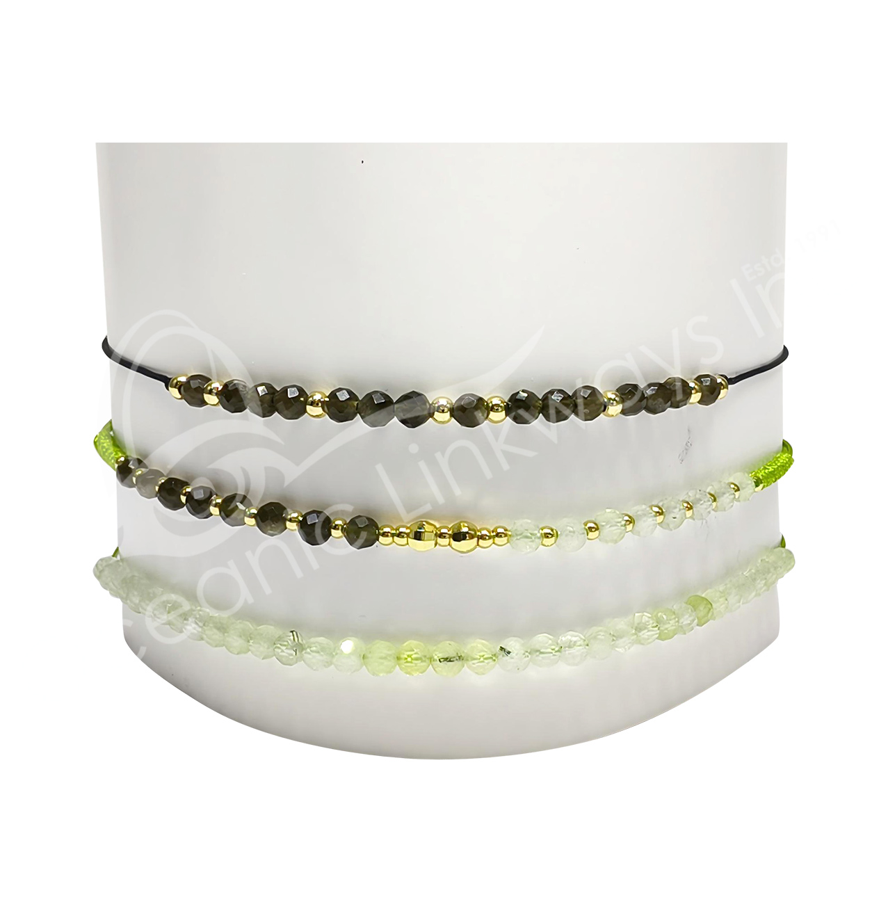 Item # 30438874BRACELET – ADJUSTABLE PREHNITE & GOLDEN OBSIDIAN (SET OF 3) (3 MM) 6-10.63″