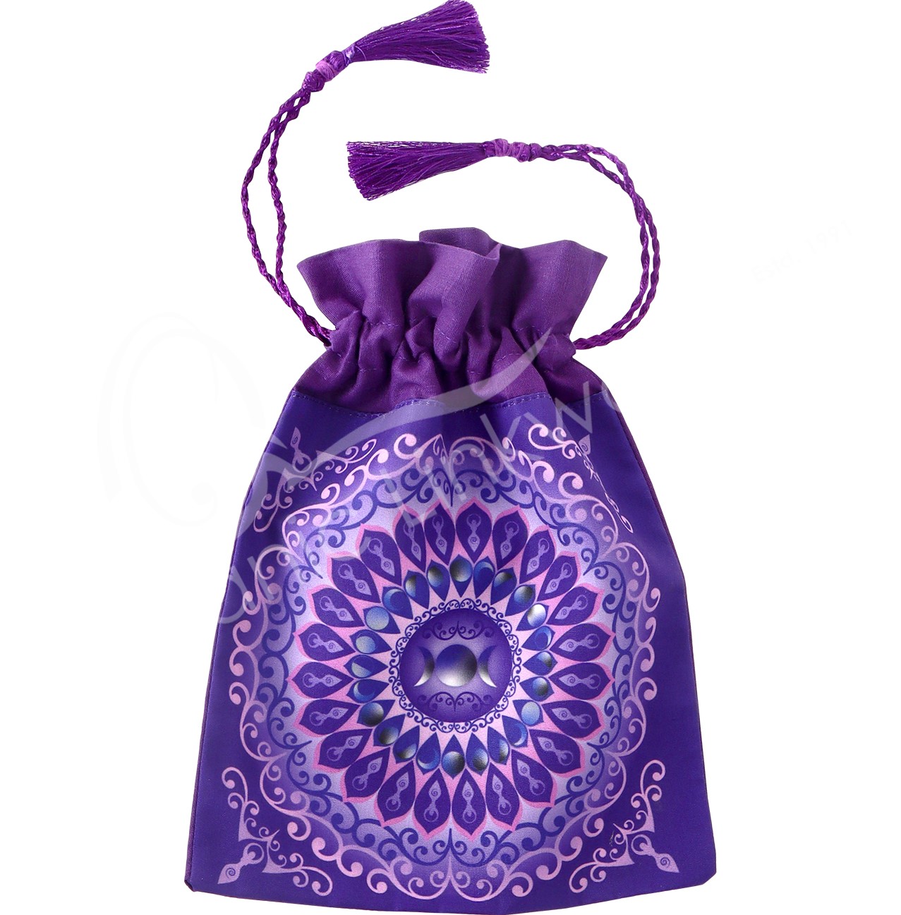 Item # 30160191 Item # 30160191PRINTED BAG – PURPLE GODDESS MANDALA WITH TASSELS 6 X 8″