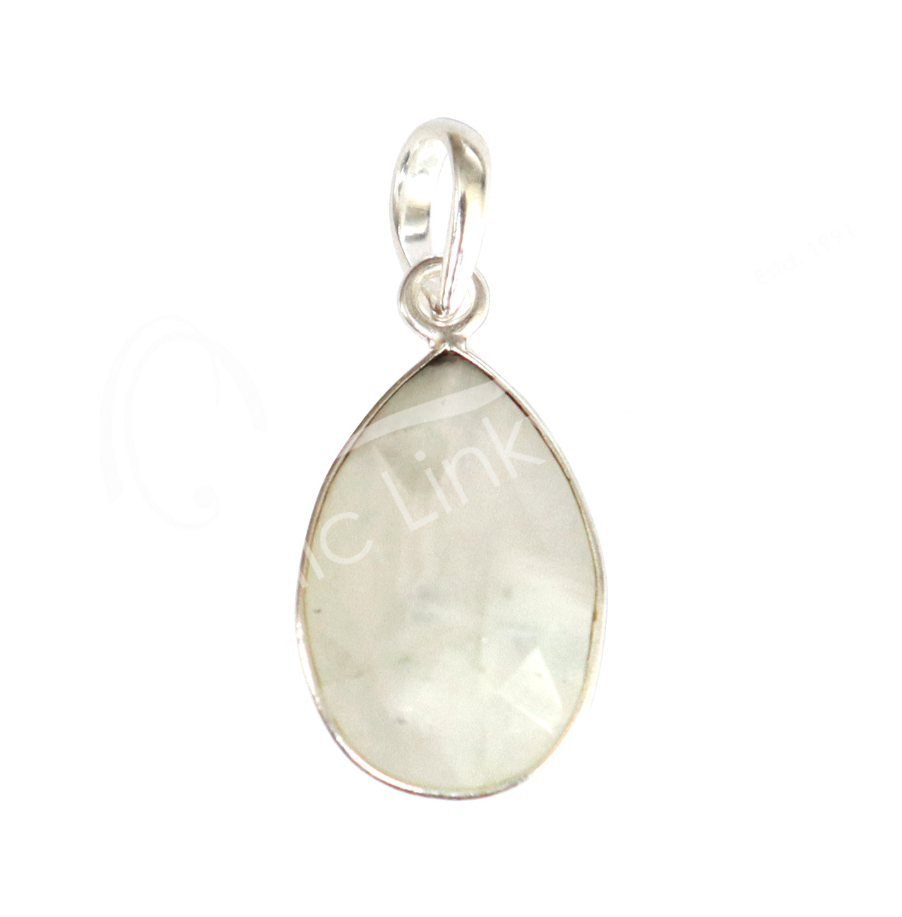 (CLOSE OUT) STERLING SILVER – PENDANT FACETED TEARDROP MOONSTONE, RAINBOW 1.15-1.25″