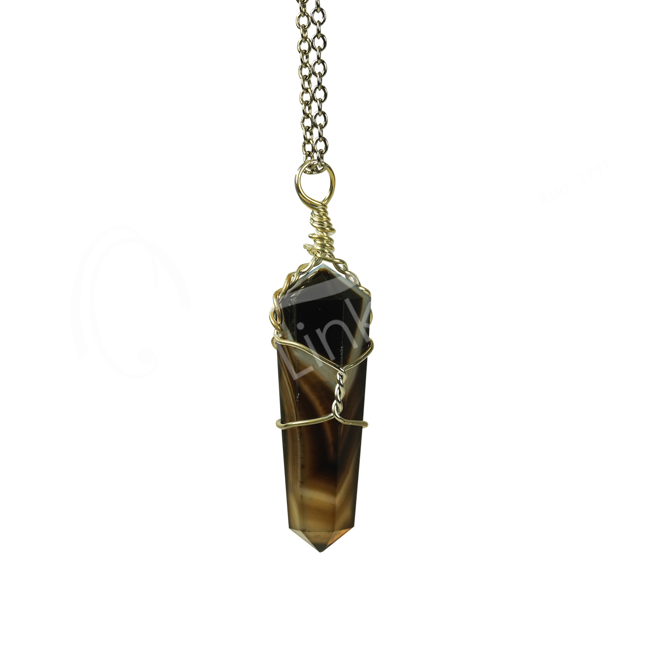 PENDANT – WIRE WRAP ONYX, BLACK (PK 5) 1.5-1.75″