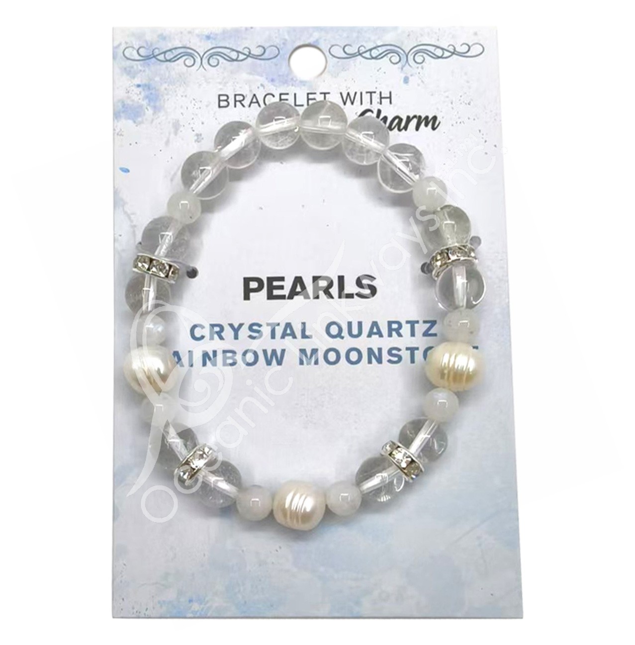 BRACELET – CRYSTAL QUARTZ & RAINBOW MOONSTONE PEARLS (8-8.5 MM) 7.15-7.25″