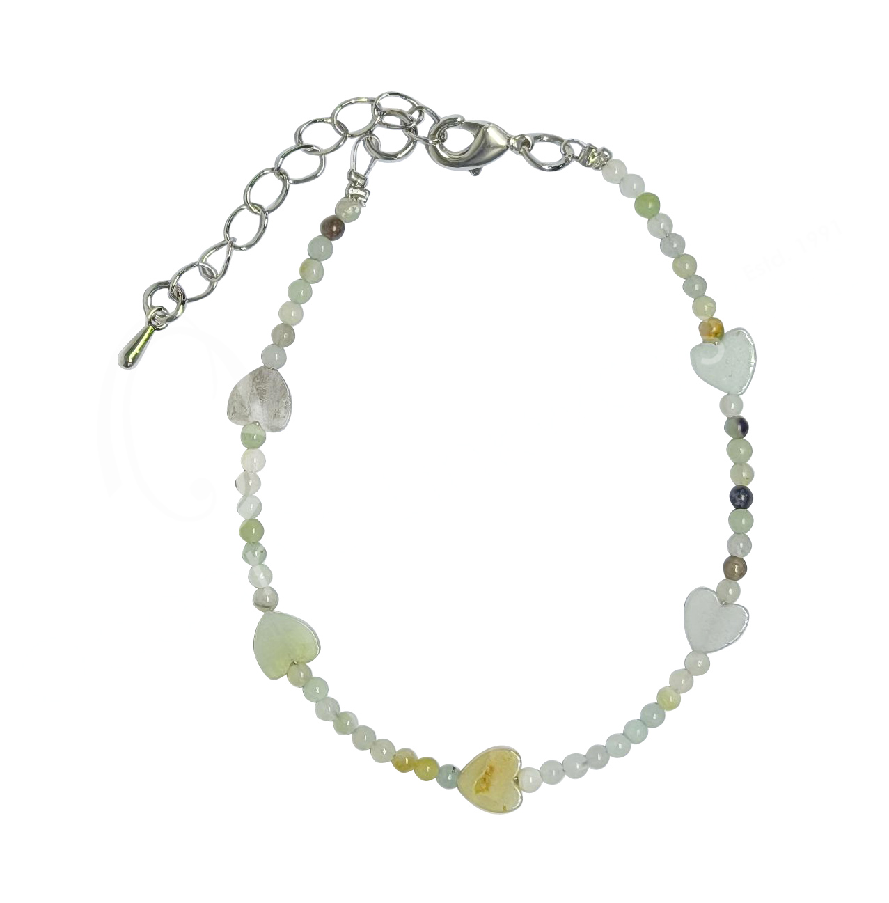 BRACELET – KID’S SIZE AMAZONITE WITH HEART CHARM 5.5-7.5″