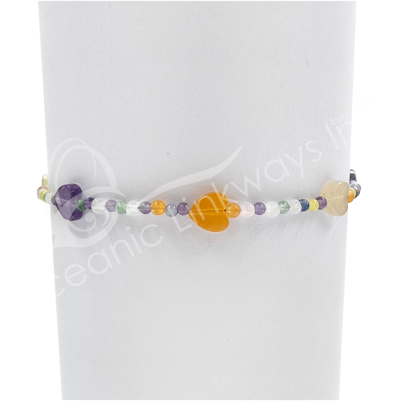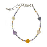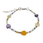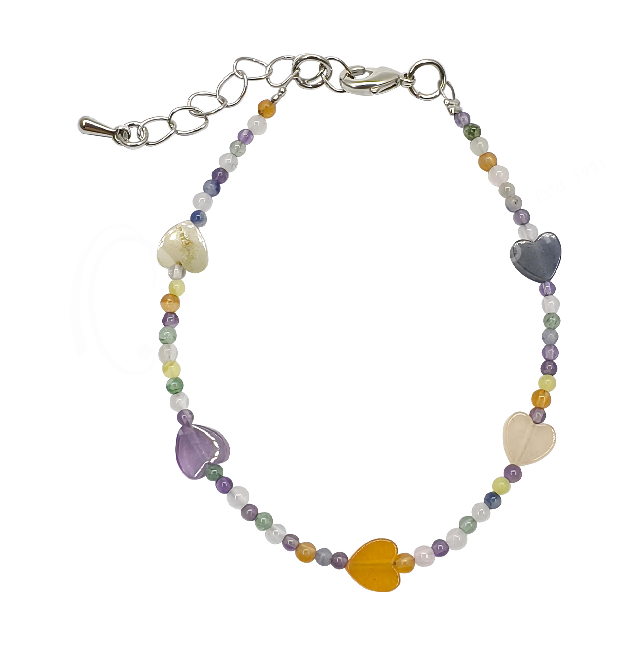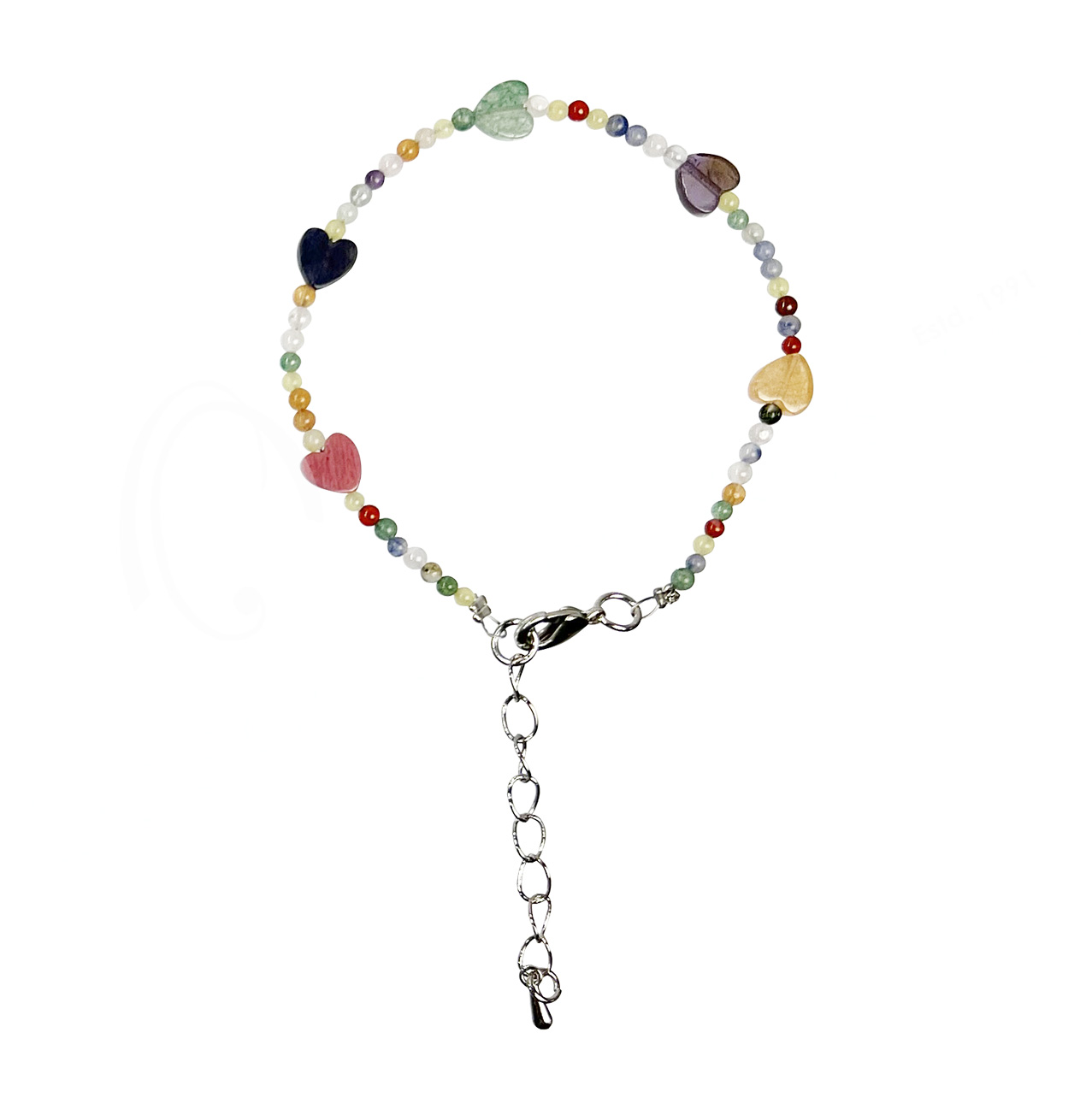 BRACELET – KID’S SIZE MIXED STONES WITH HEART CHARM 5.5-7.5″