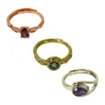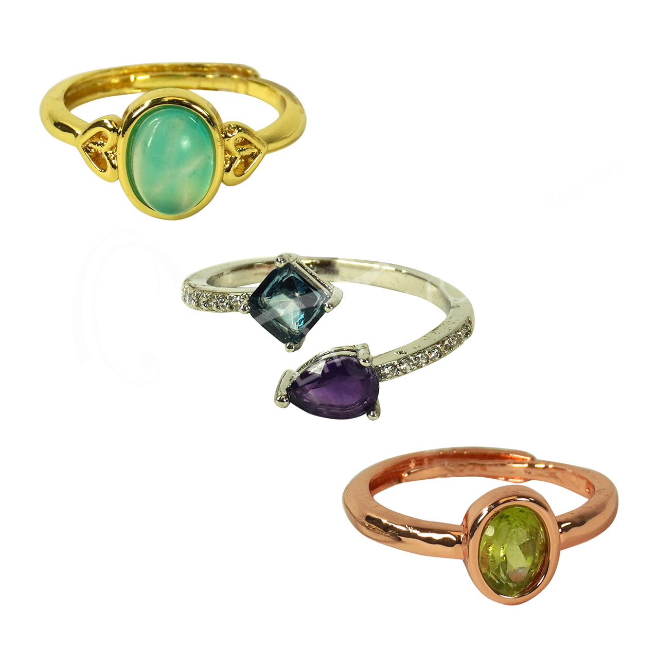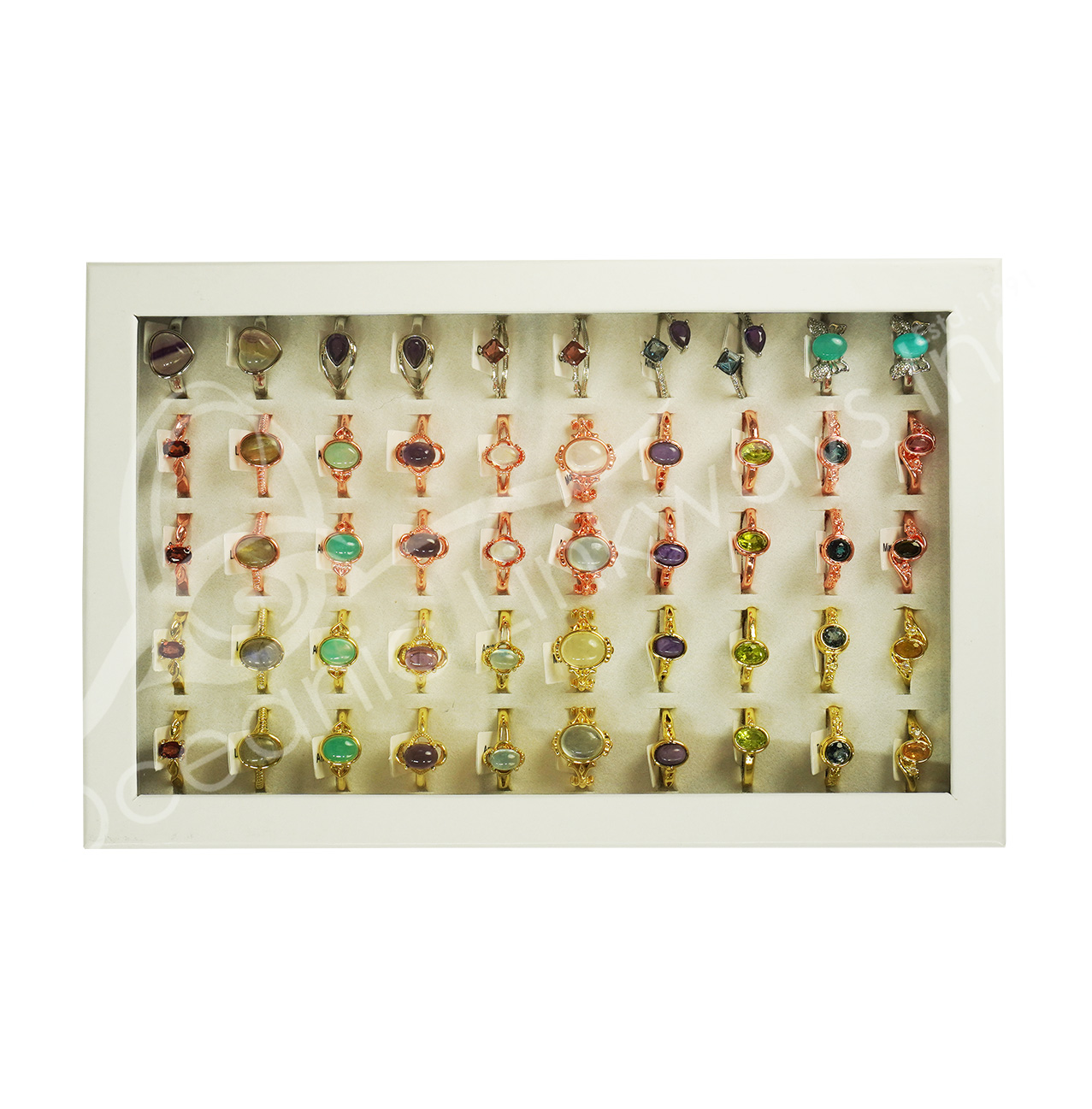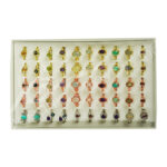 RING – BRASS, SILVER PLATED MIXED STONES & SETTINGS ADJUSTABLE (TRAY OF 50)