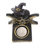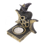 CANDLE HOLDER – BLACK CAT TRIPLE MOON PENTACLE 4.15″L X 5″H