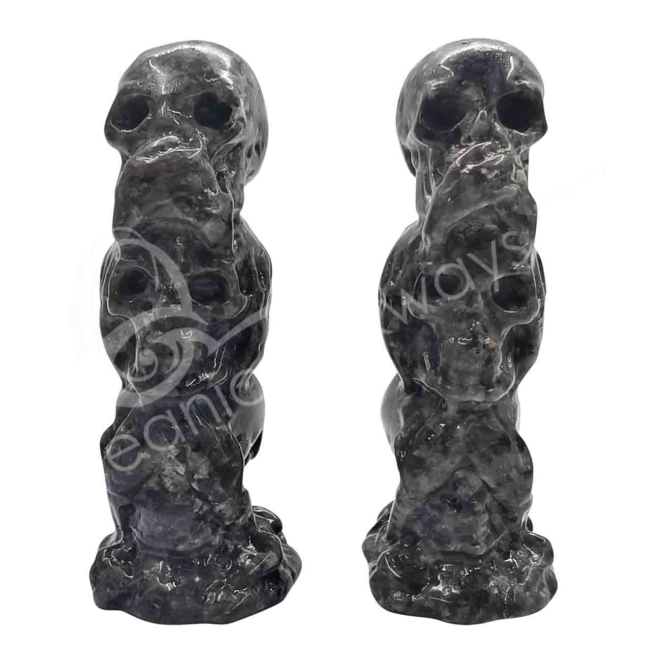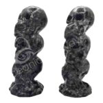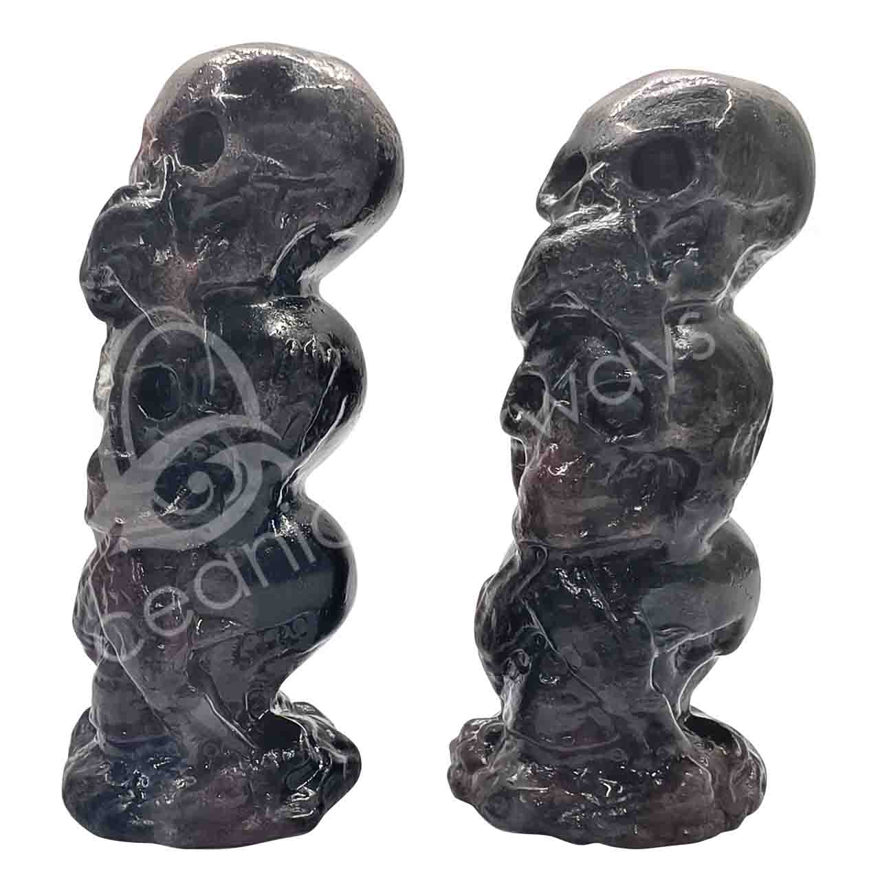 CARVING – TRIPLE SKULLS FLAME STONE 4-4.75″