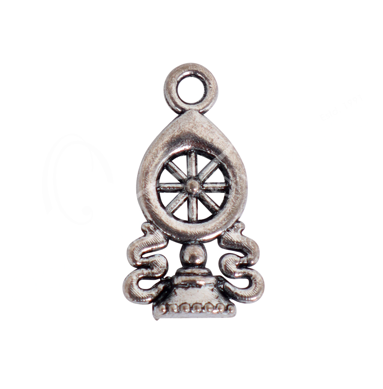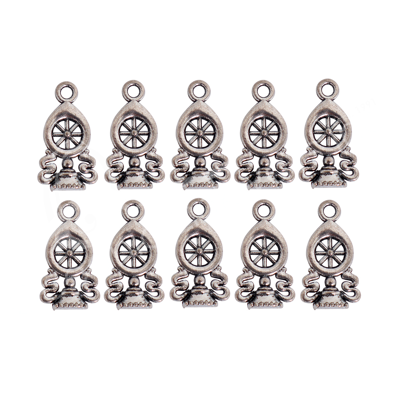 (CLOSE OUT) BEADS – METAL BUDDHIST WHEEL (PK 10) 18 X 9 MM