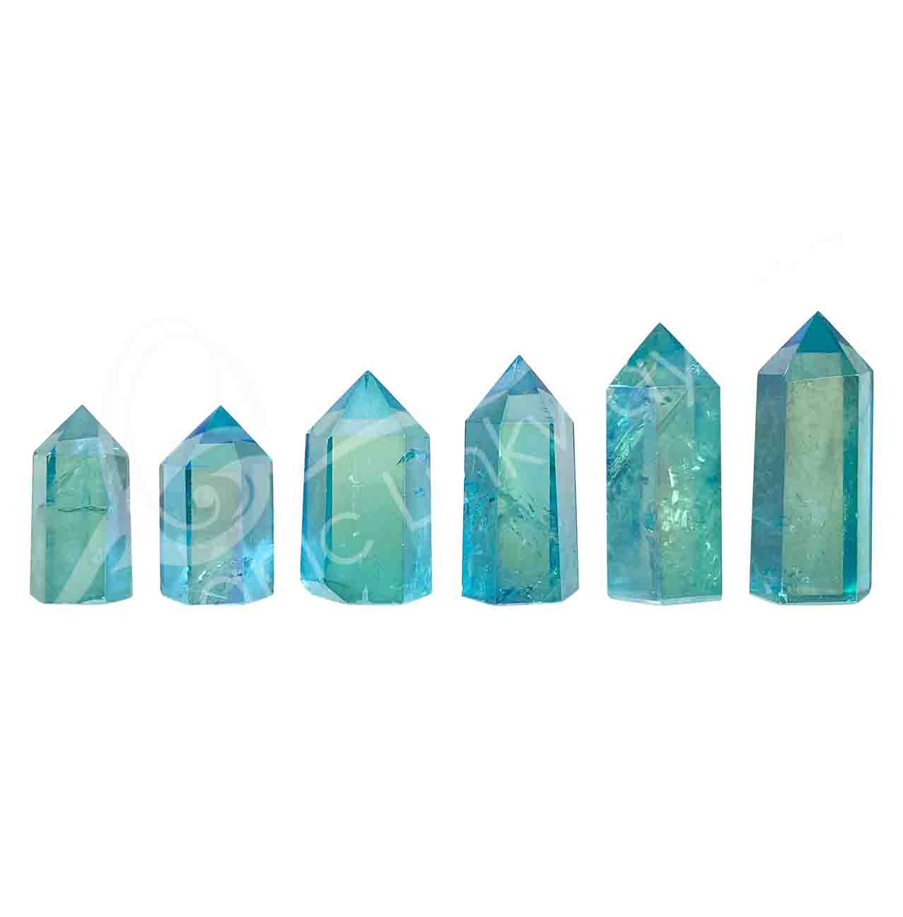 (CLOSE OUT) OBELISK – CRYSTAL QUARTZ PLATED AQUA AURA 1.5-2.5″