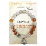 BRACELET – AGATE, DENDRITIC & CARNELIAN LADYBUG (8-8.5 MM) 7.15-7.25″