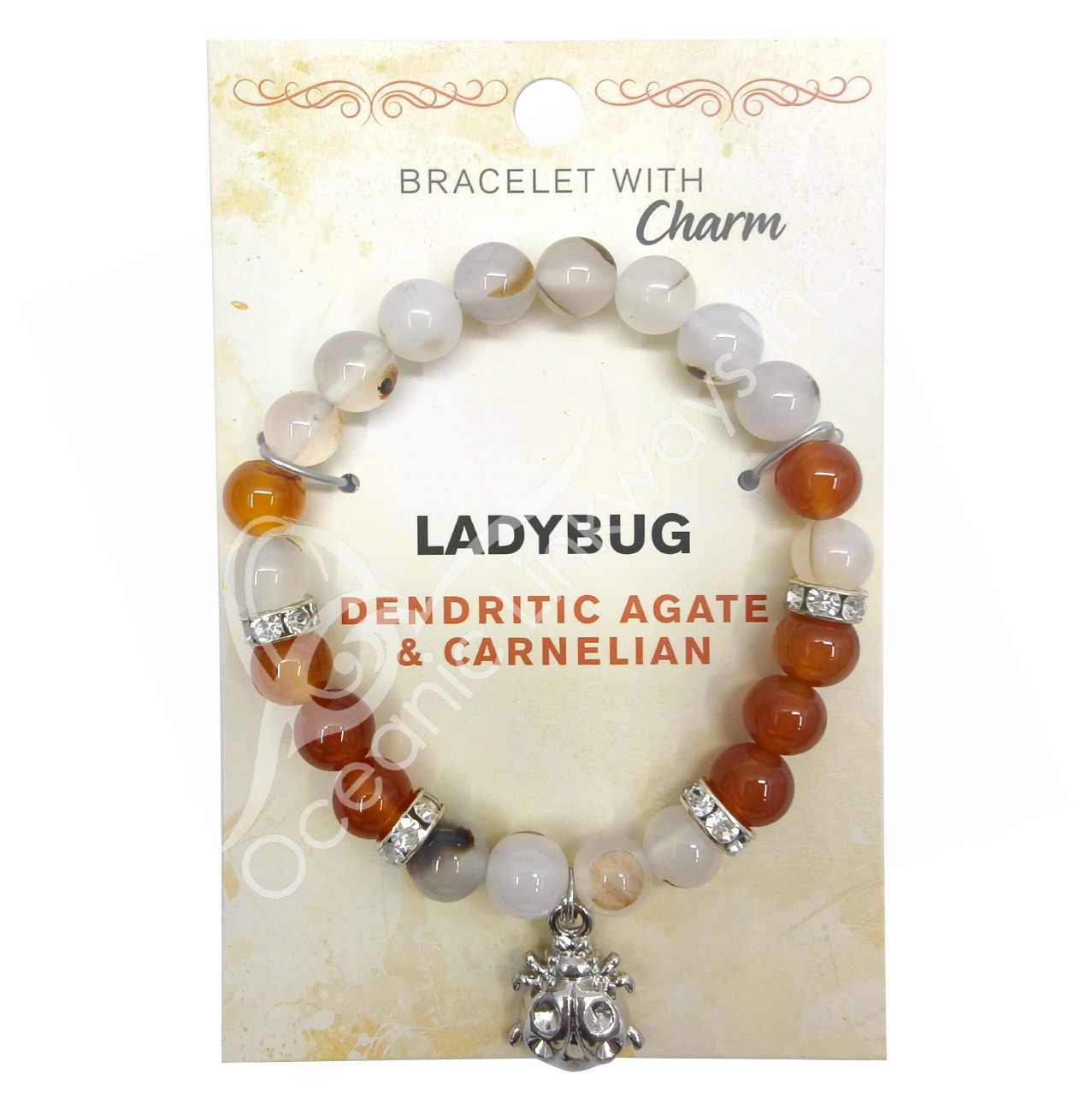 BRACELET – AGATE, DENDRITIC & CARNELIAN LADYBUG (8-8.5 MM) 7.15-7.25″