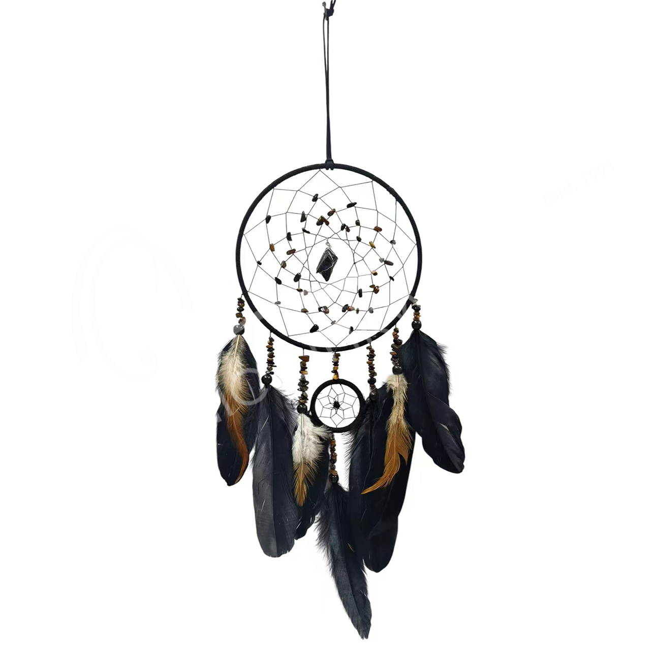 DREAMCATCHER – OBSIDIAN, BLACK & TIGER EYE 6.75-7″DIA. X 22-24″L