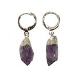 EARRINGS – POINT NATURAL AMETHYST WITH CLICK HOOP 1.15-1.35″L
