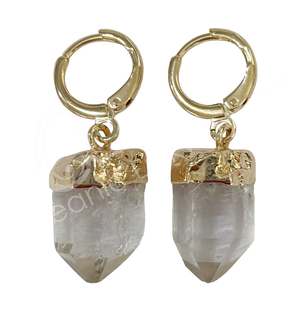 EARRINGS – POINT NATURAL CRYSTAL QUARTZ WITH CLICK HOOP 1.15-1.25″