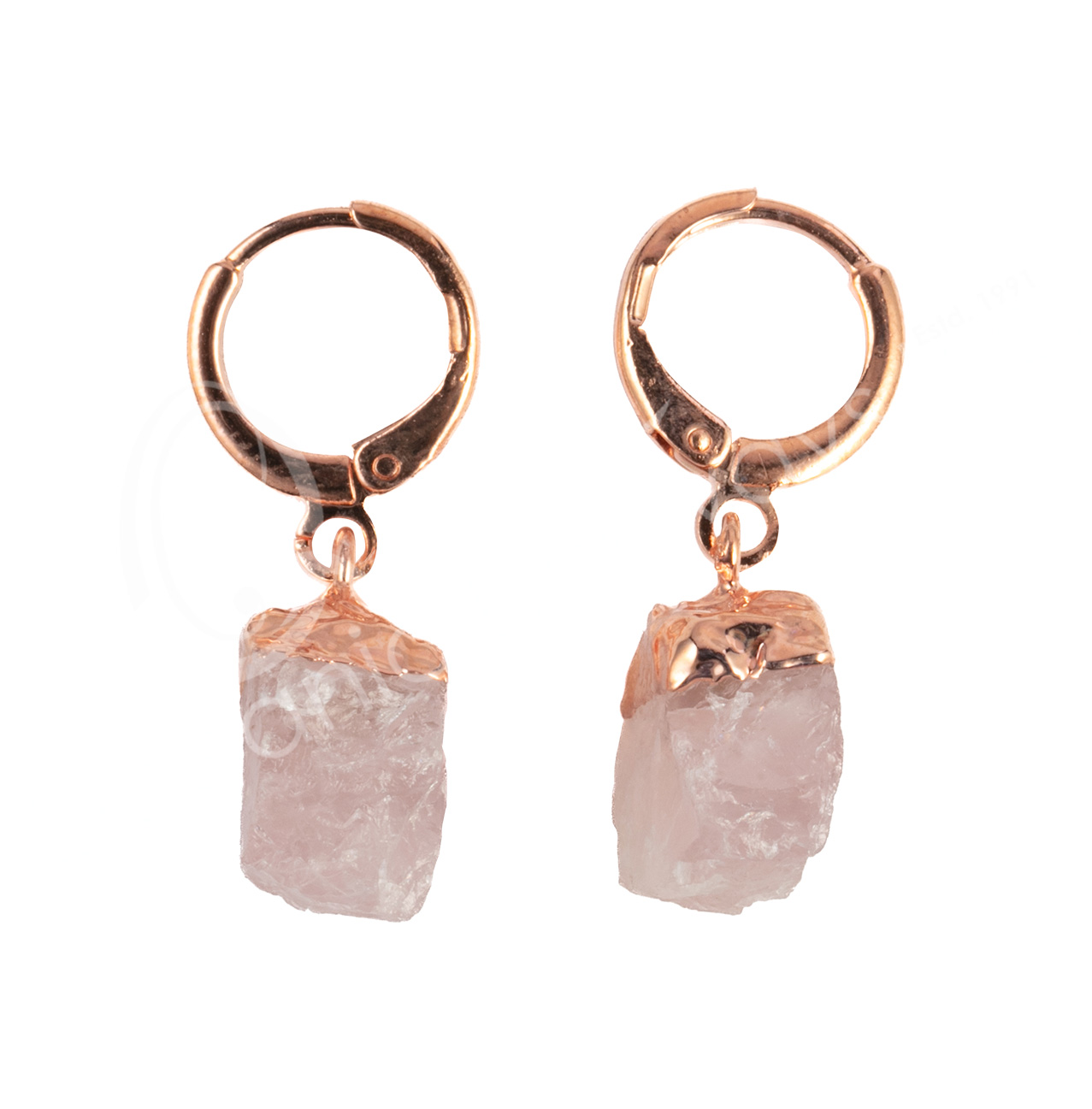 EARRINGS – POINT NATURAL ROSE QUARTZ WITH CLICK HOOP 1.15-1.25″