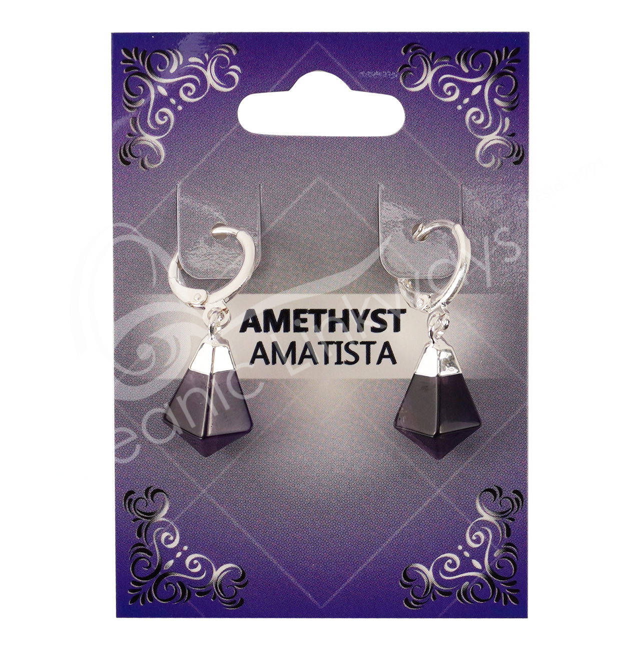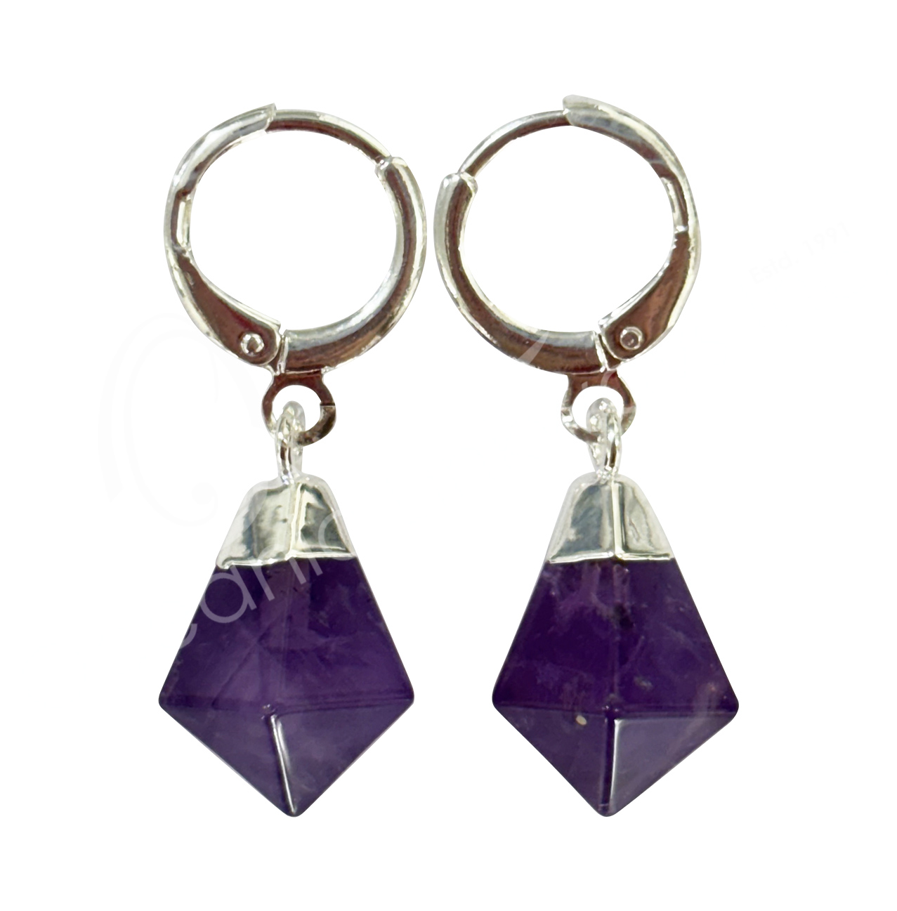EARRINGS – POINT POLISHED AMETHYST WITH CLICK HOOP 1.15-1.25″