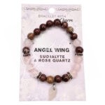 BRACELET – EUDIALYTE & ROSE QUARTZ WITH ANGEL WING CHARM (8-8.5 MM) 7.15-7.25″