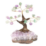 GEM TREE – AMETHYST & AVENTURINE, GREEN TUMBLED STONES WITH AMETHYST BASE 4.5-5.5″