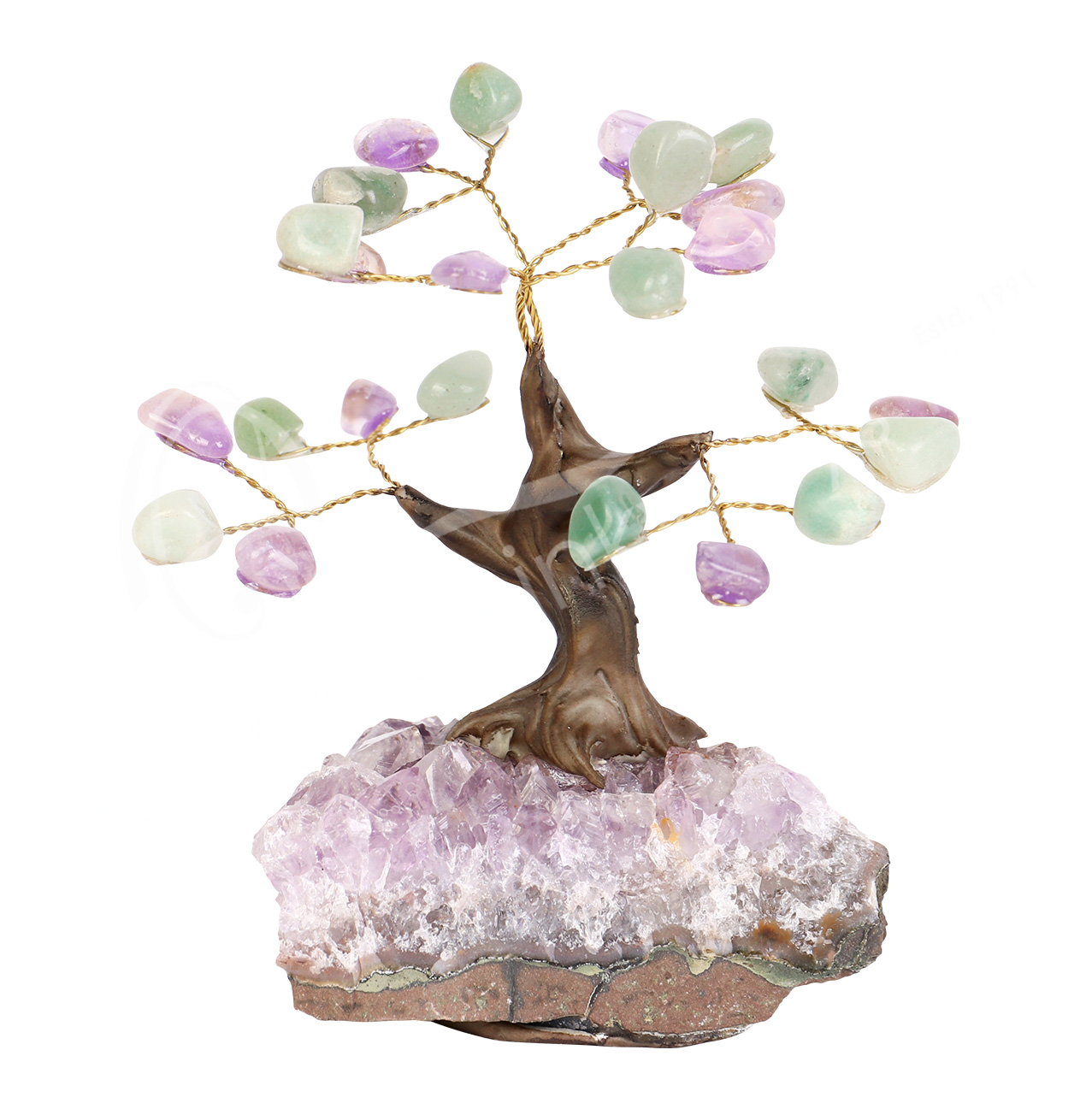 GEM TREE – AMETHYST & AVENTURINE, GREEN TUMBLED STONES WITH AMETHYST BASE 4.5-5.5″