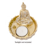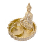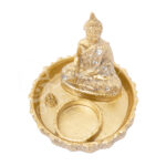 TEALIGHT & INCENSE HOLDER – BUDDHA, GOLD 3.95″L X 3.95″H