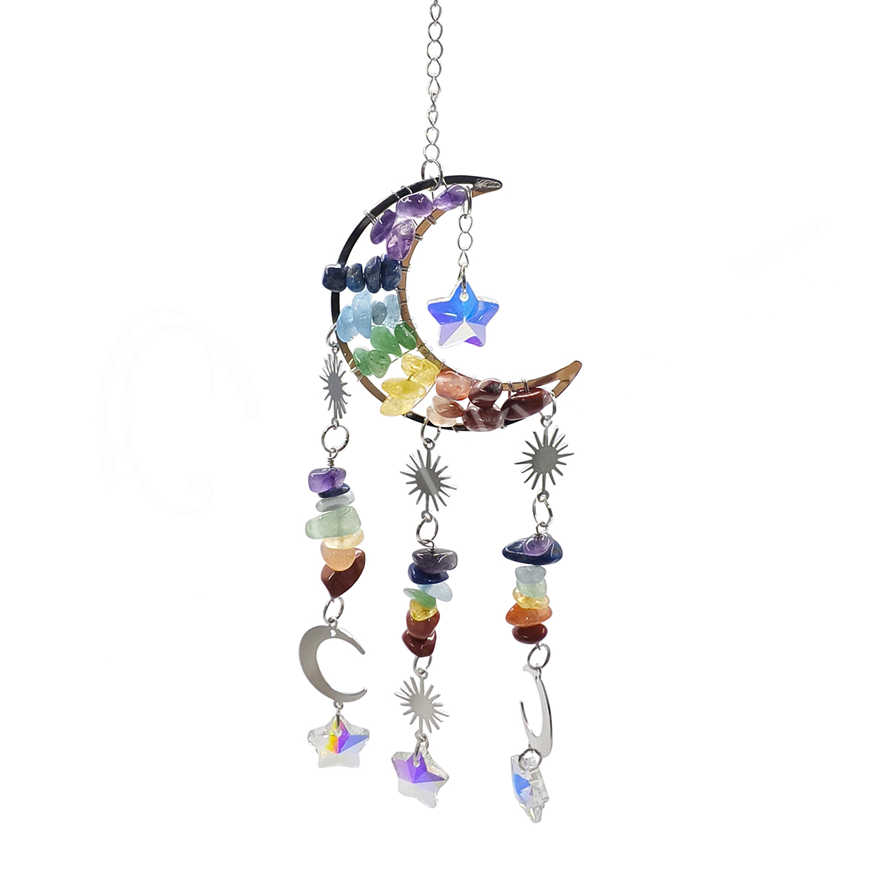 HANGING – MOON WITH CHAKRA CHIPS 8.5-9″L