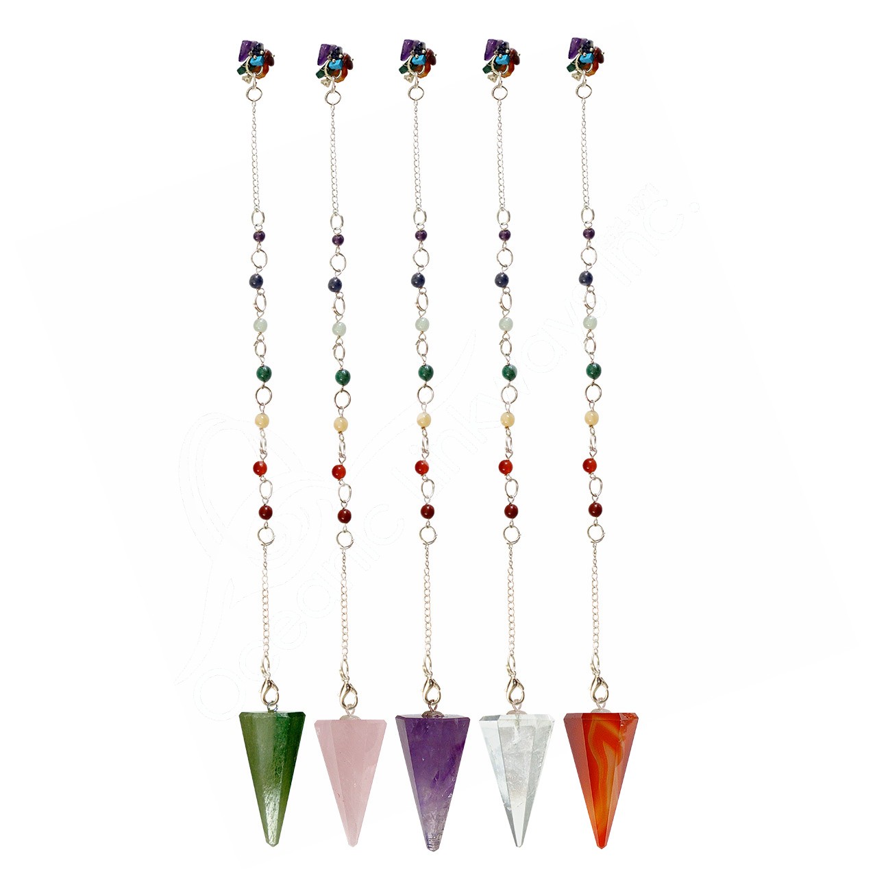 PENDULUM – HEXAGONAL MIXED STONES CHAKRA CHAIN WITH CHIPS 10″L