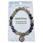 BRACELET – K2, AFRICAN & SODALITE WITH CELESTIAL CHARM (8-8.5 MM) 7.15-7.25″