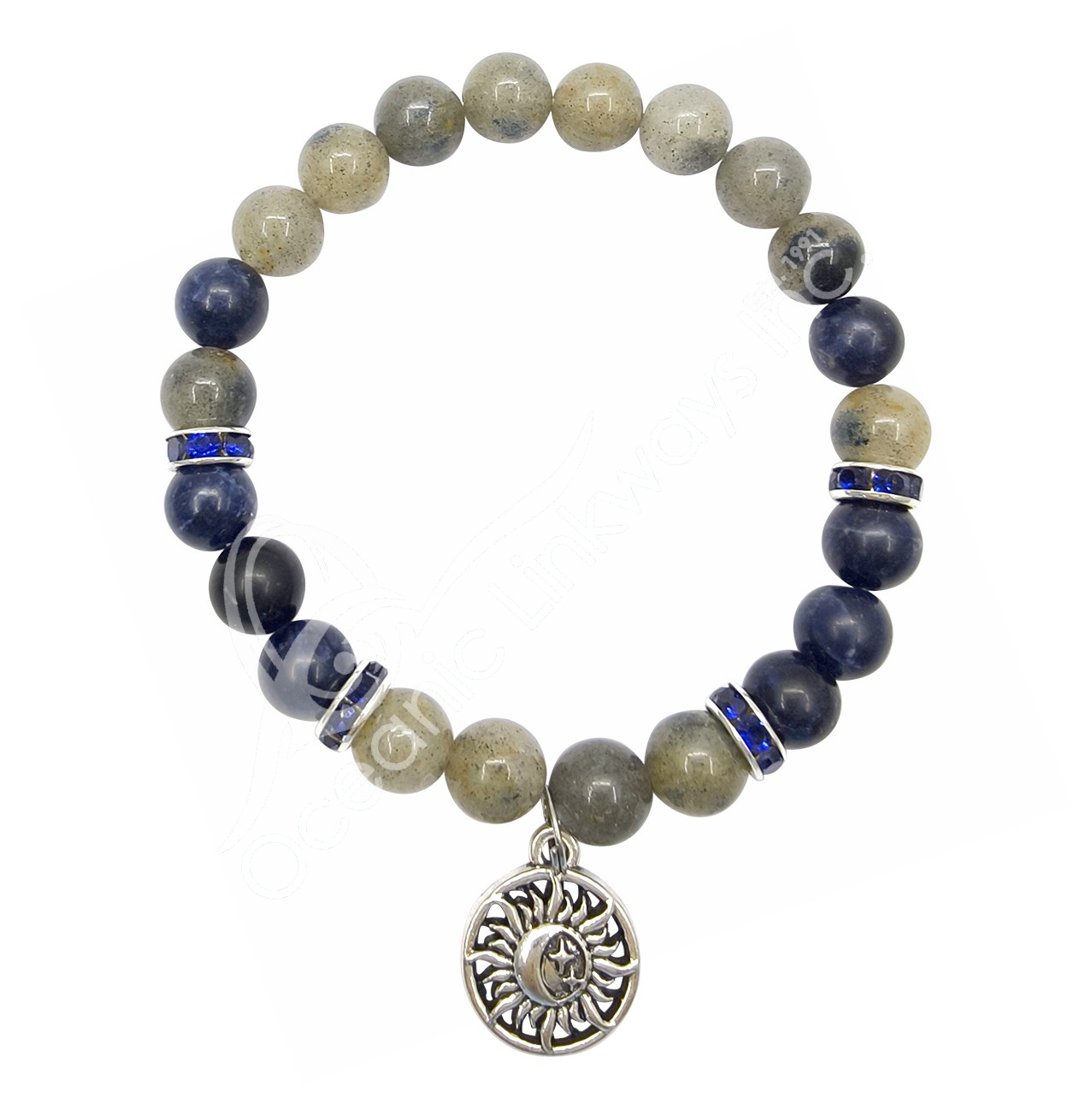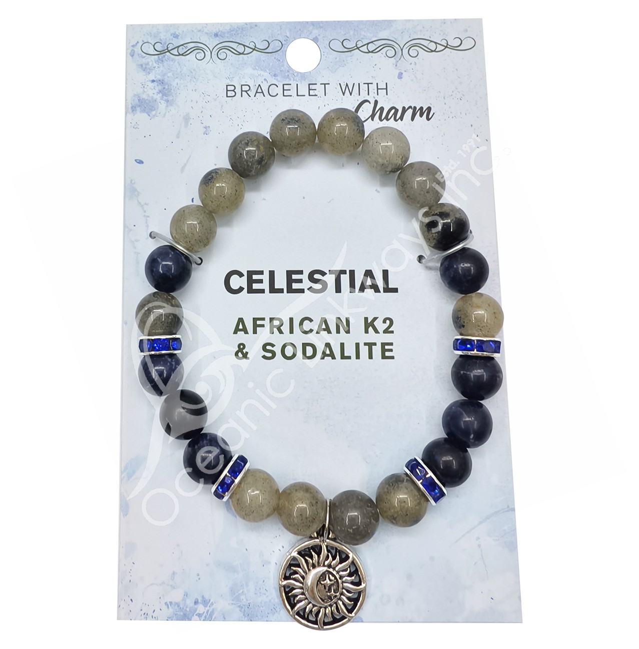 BRACELET – K2, AFRICAN & SODALITE WITH CELESTIAL CHARM (8-8.5 MM) 7.15-7.25″