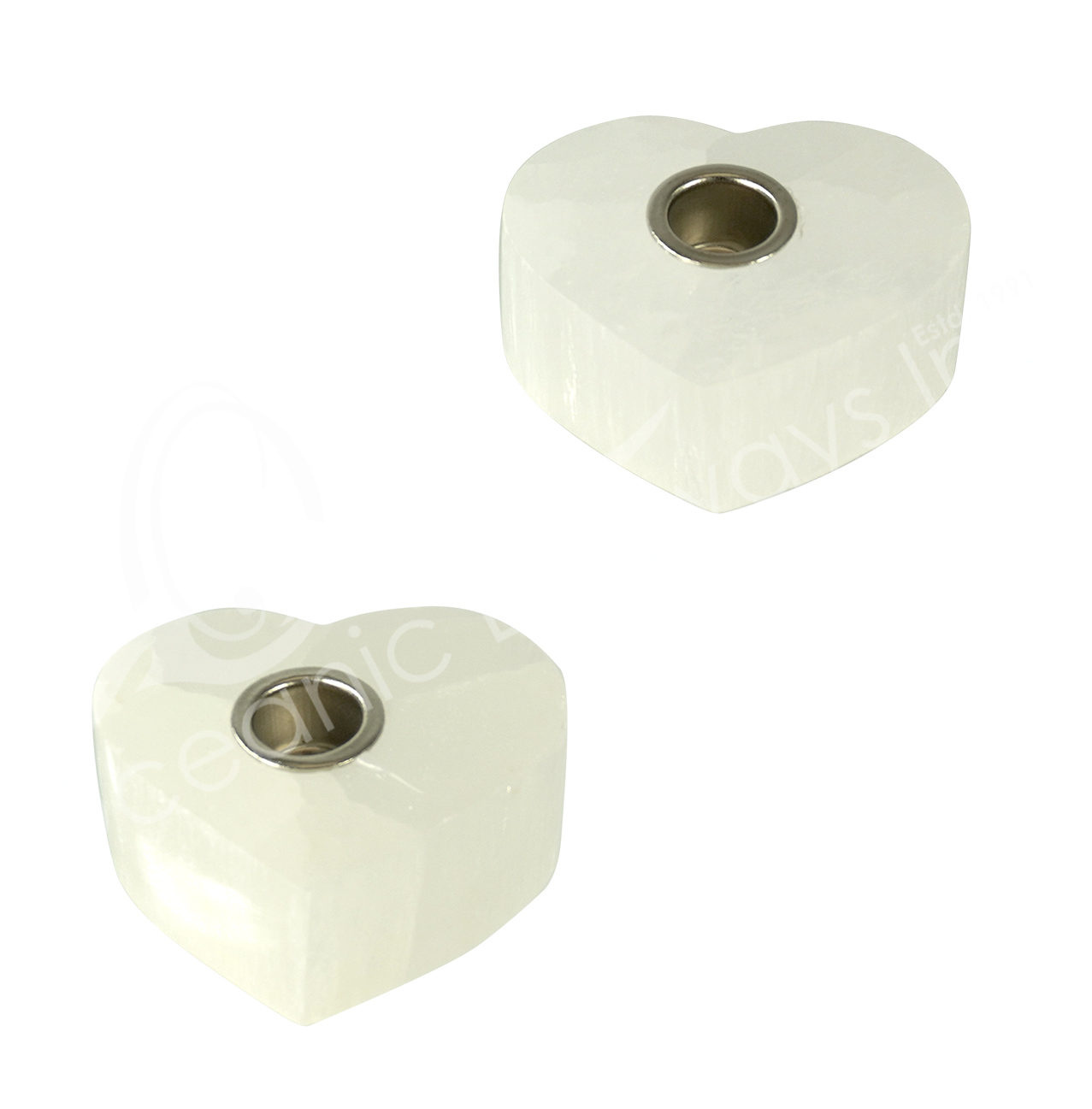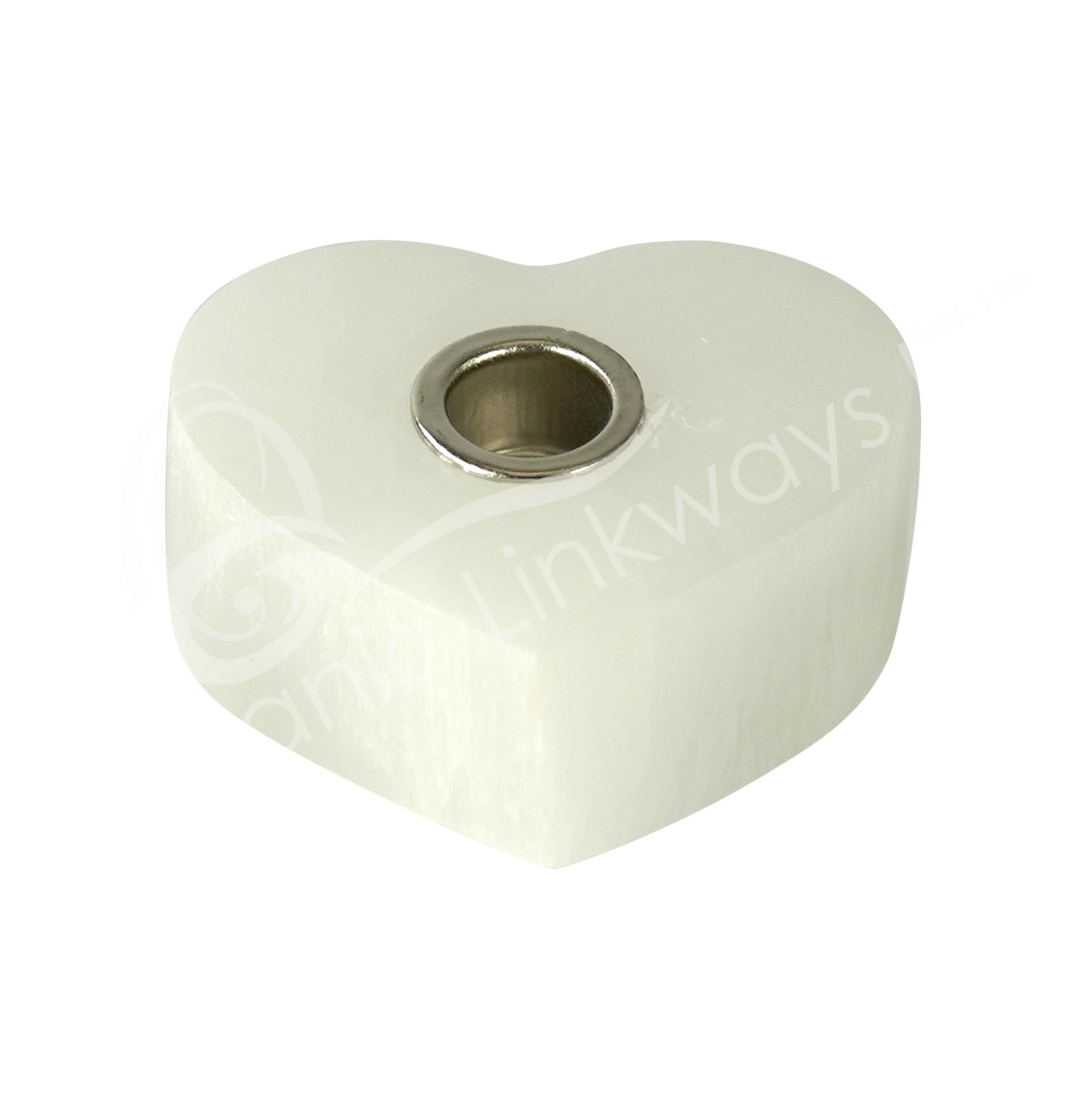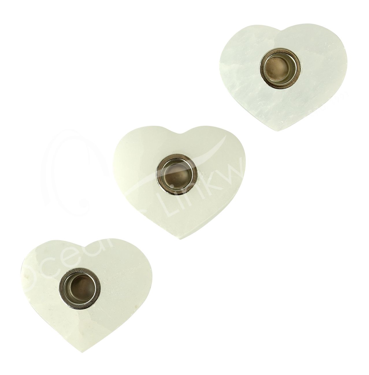 MINI CANDLE HOLDER – SELENITE HEART 2.25-2.5″DIA. X 0.85-1″H