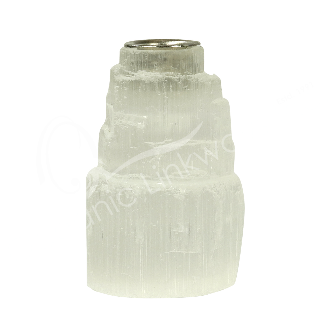 MINI CANDLE HOLDER – SELENITE ICEBERG 2.25-2.5″H X 1.25-1.5″Dia.