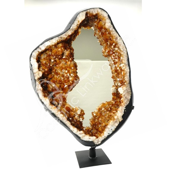MIRROR – CITRINE DRUSE ON METAL STAND 27″H X 17″W