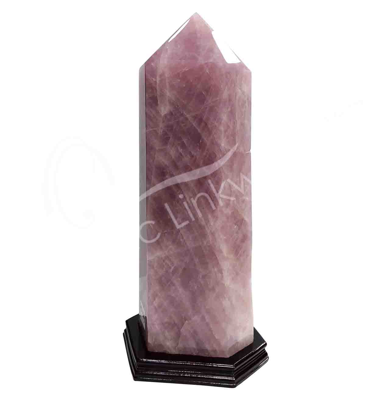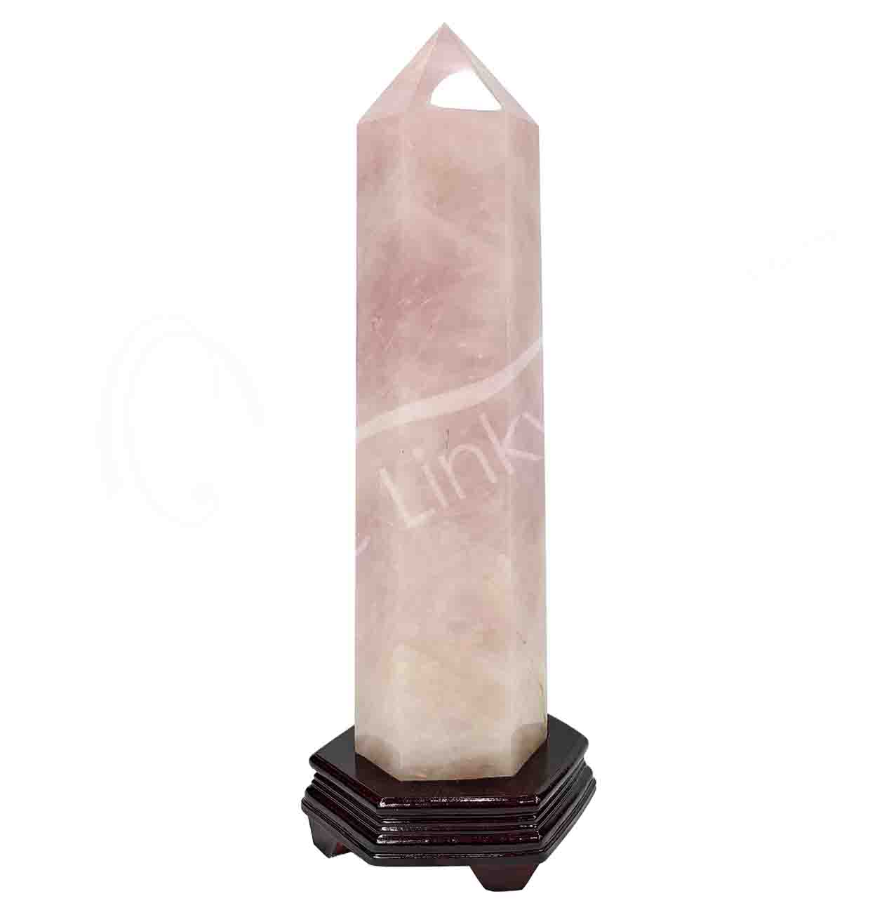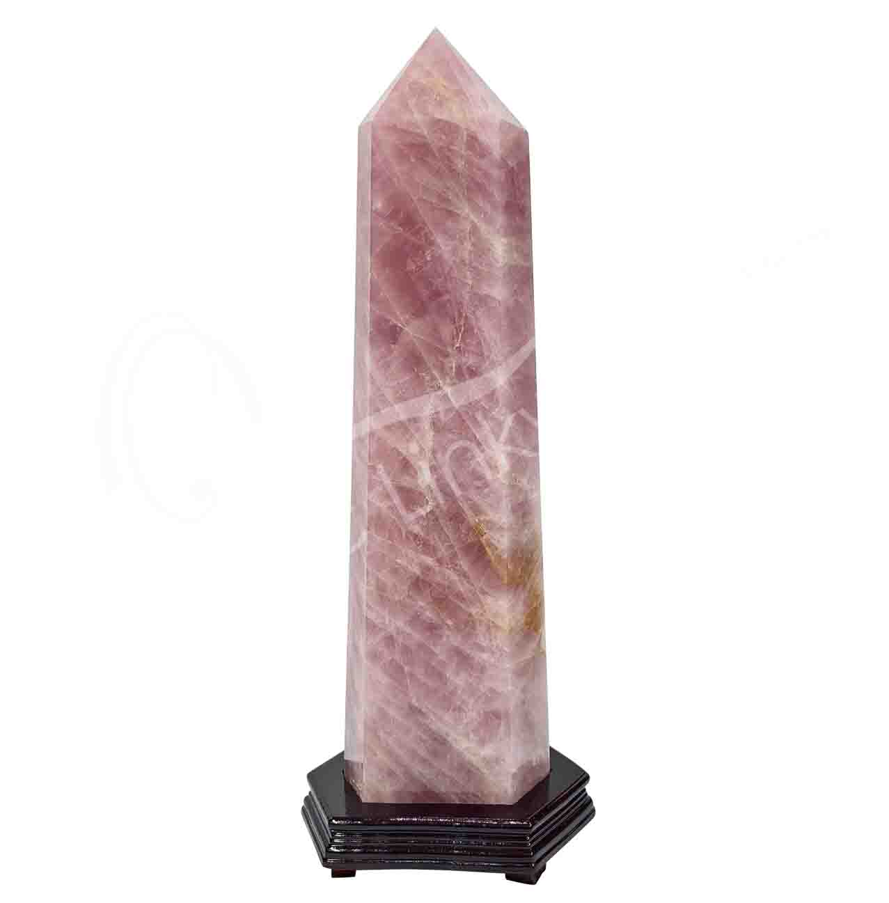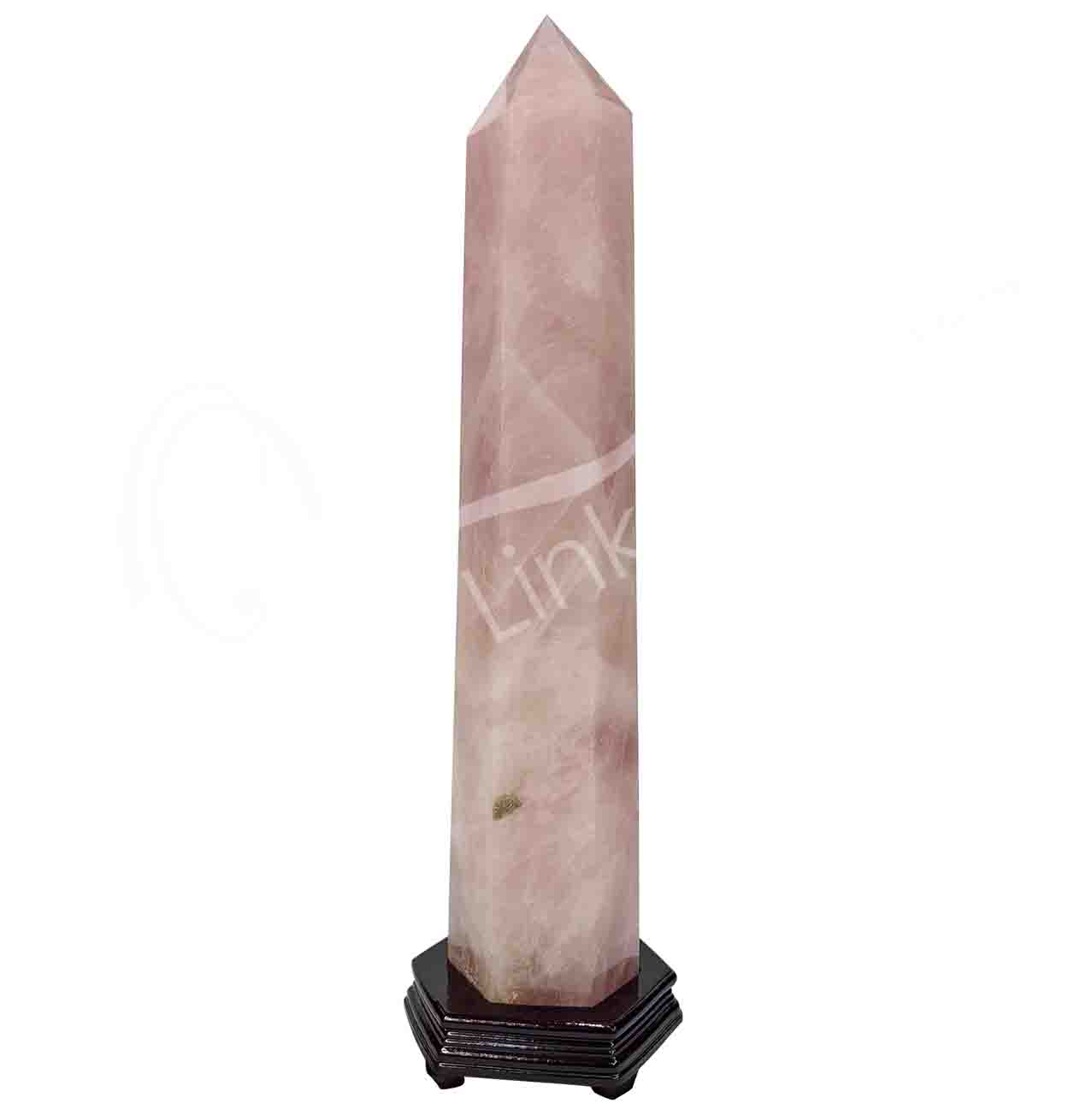 OBELISK – ROSE QUARTZ ON WOOD STAND 12-24″