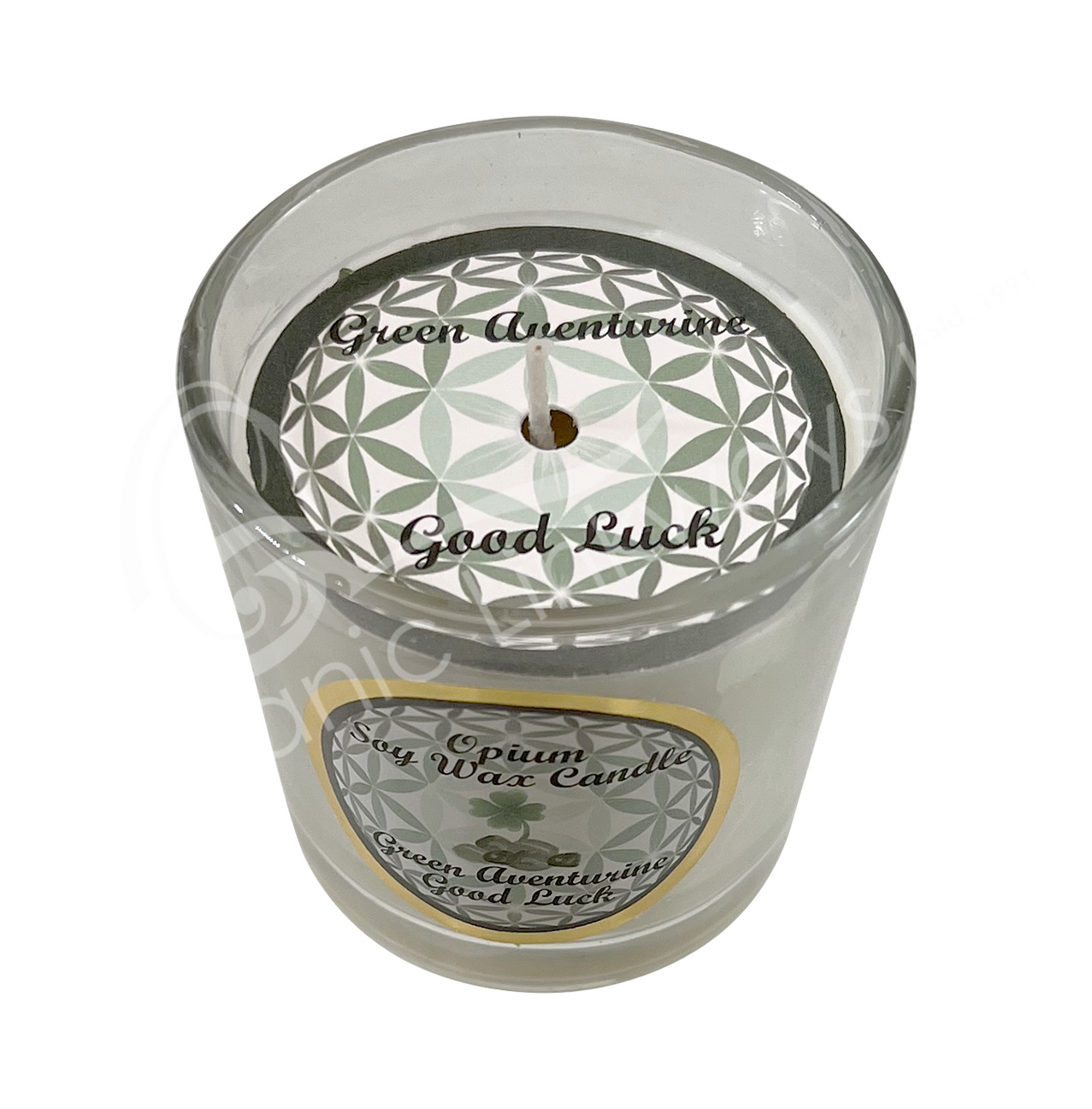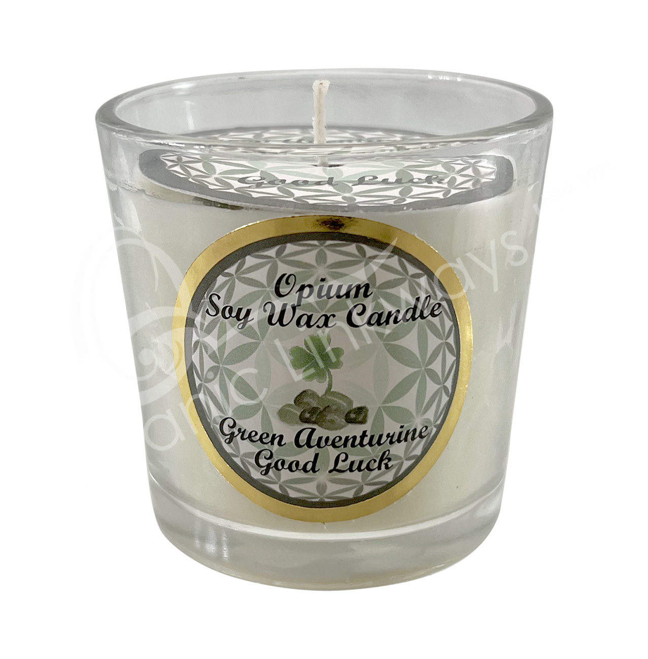 CANDLE VOTIVE – SOY WAX OPIUM WITH GREEN AVENTURINE/GOOD LUCK (PK 6) 2.25-2.5″H X 2.25″DIA.