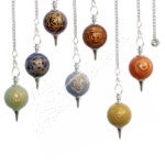 PENDULUM – BALL GOLD CHAKRAS ENGRAVED (SET OF 7) PLAIN CHAIN 9″L