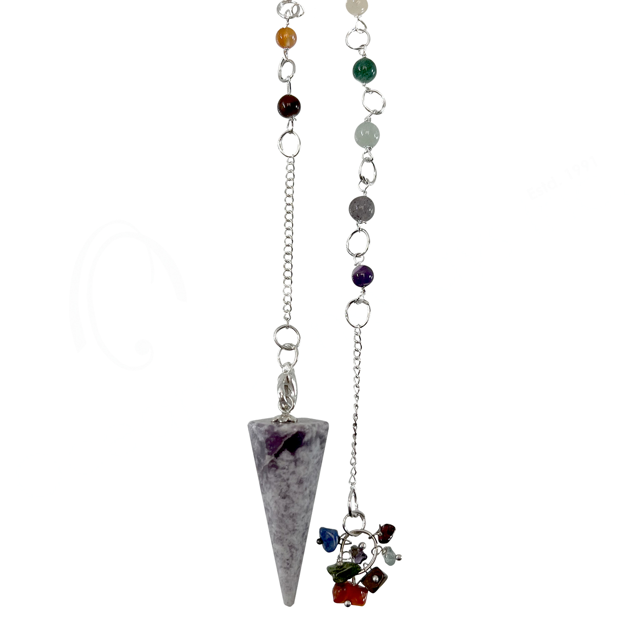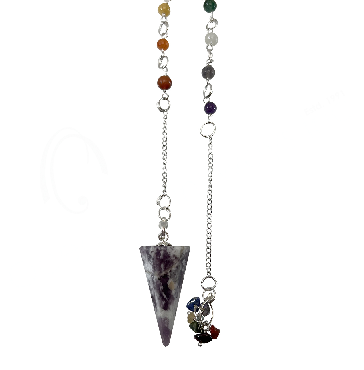 PENDULUM – HEXAGONAL LEPIDOLITE CHAKRA CHAIN WITH CHIPS 10.5-11″L
