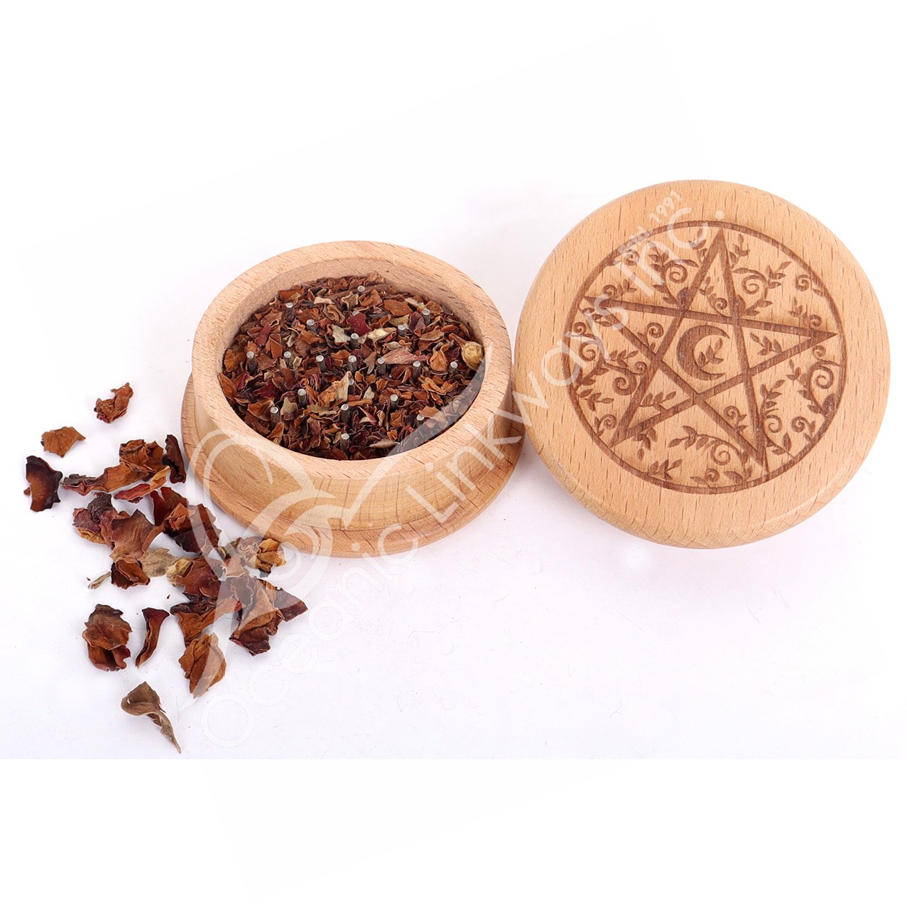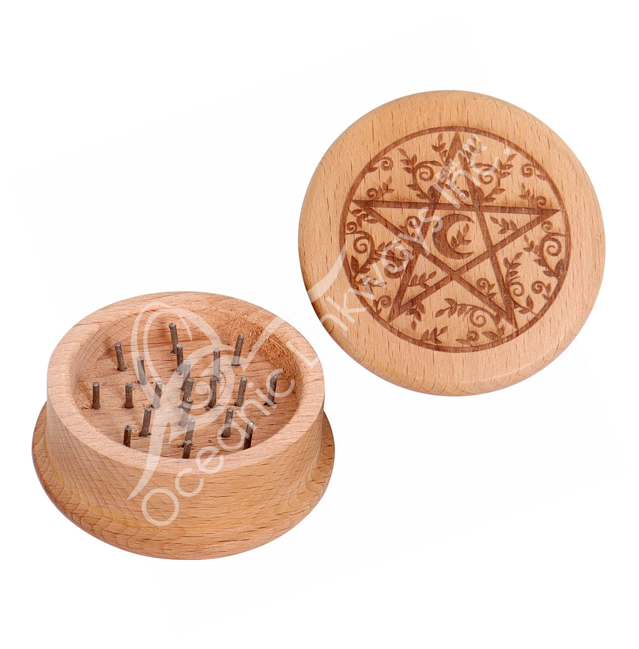 GRINDER FOR HERBS – WOOD ENGRAVED PENTACLE 2.5″DIA.