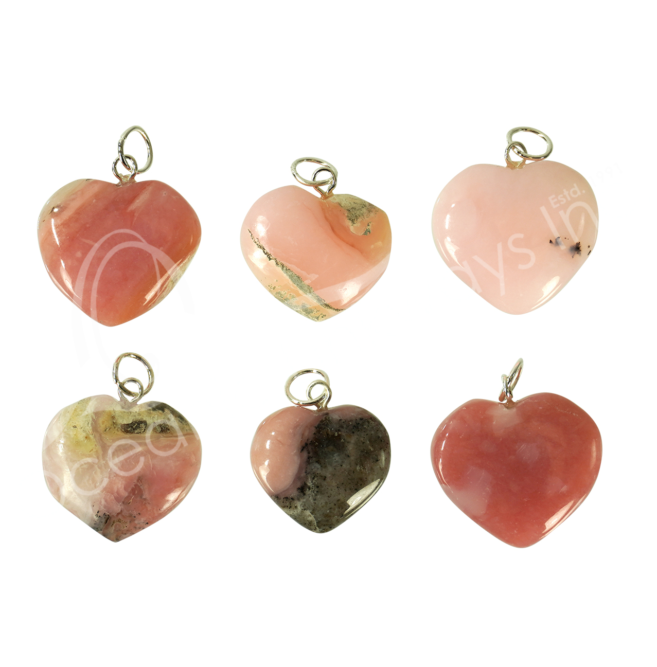 PENDANT – HEART OPAL, PINK (PK 6) 1-1.15″L