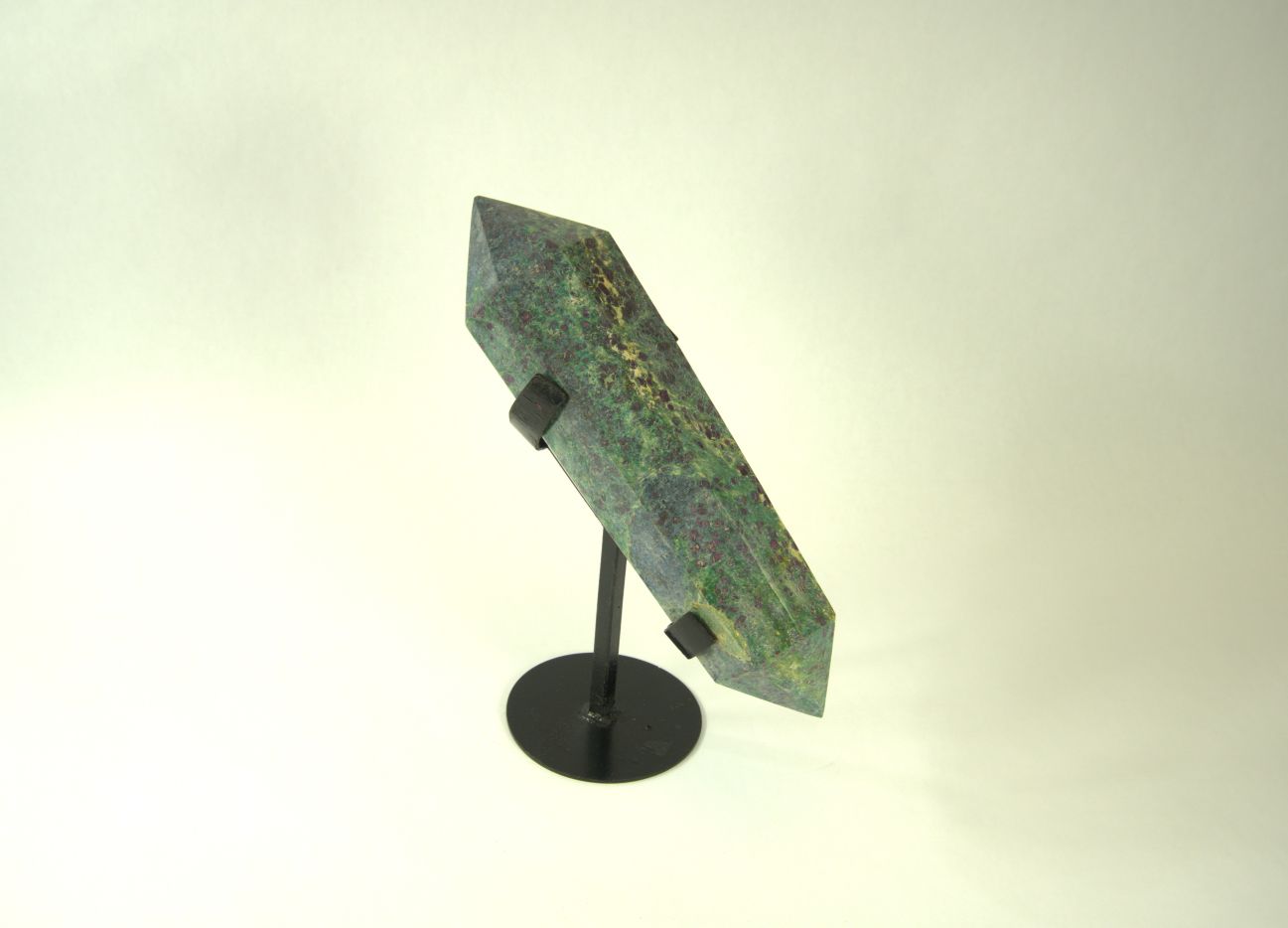 POINT – RUBY ZOISITE DOUBLE TERMINATED ON METAL STAND 11″L X 3″W