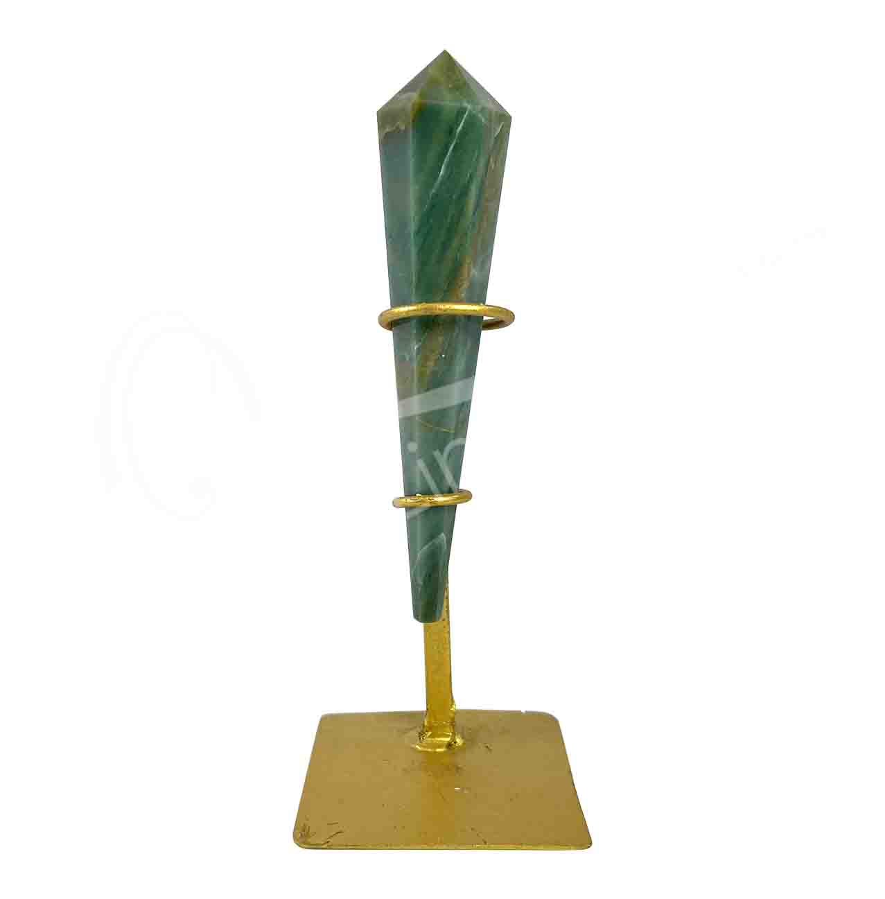 POINT – TAPPER 6 FACETS GREEN QUARTZ ON METAL STAND 6.5-8”