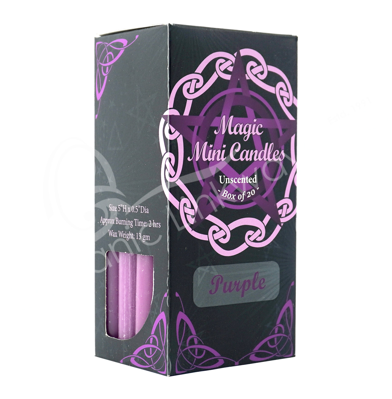 CANDLE – MINI UNSCENTED PURPLE (PK 20) 4.75-5″H