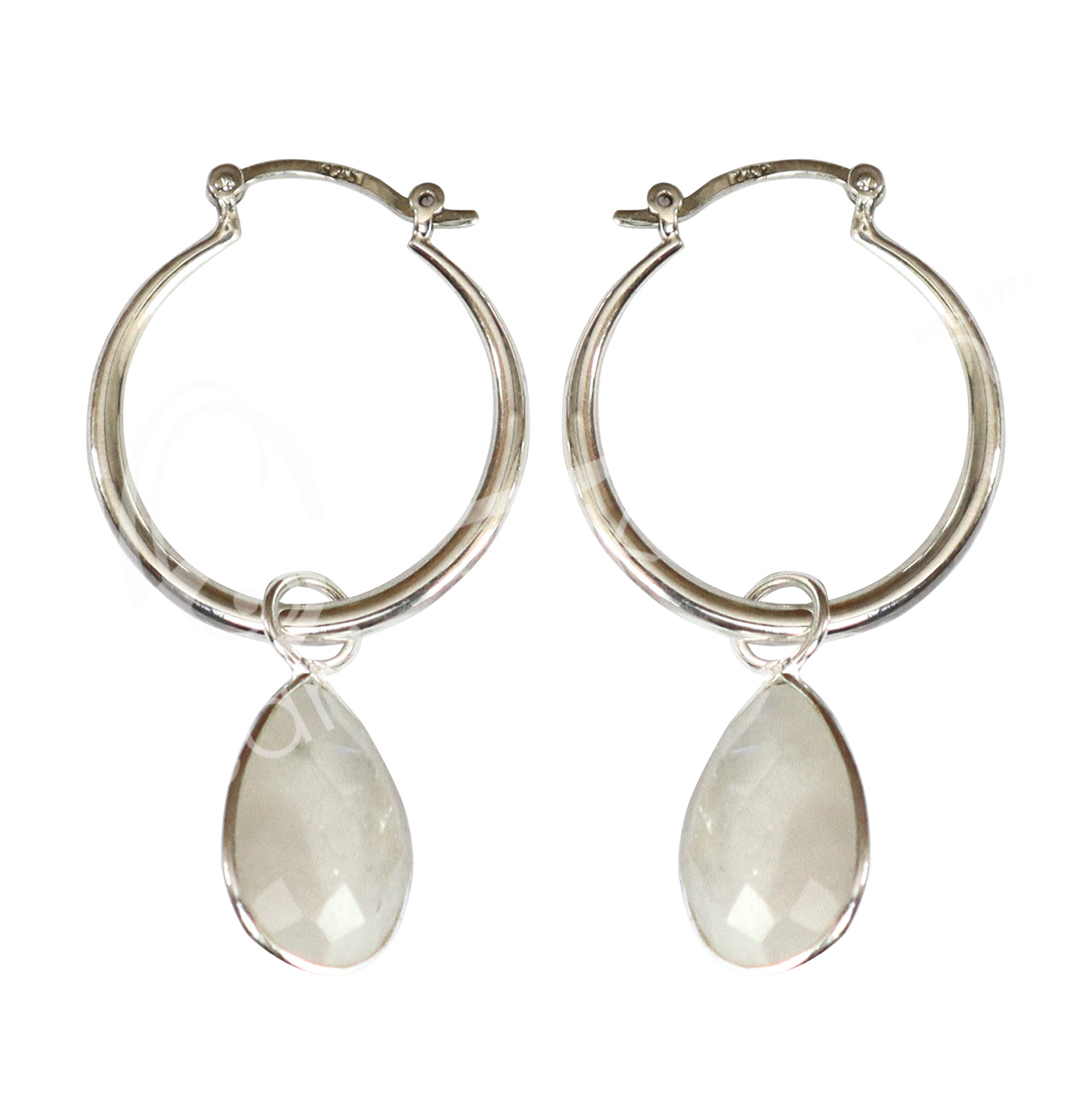 (CLOSE OUT) STERLING SILVER – EARRINGS FACETED TEARDROP MOONSTONE, RAINBOW 1.25-1.35″